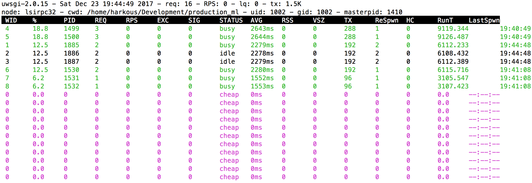 The workflow for building machine learning models often ends at the evaluation stage: you have achieved an acceptable accuracy, and “ ” ta-da! Mission Accomplished. Beyond that, it might just be sufficient to get those nice-looking graphs for your paper or for your internal documentation. In fact, going the extra mile to put your model into production is not always needed. And even when it is, this task is delegated to a system administrator. However, nowadays, many researchers/engineers find themselves responsible for handling the complete flow from conceiving the models to serving them to the outside world. Whether it is a university project or a personal experiment, demonstrating our work is generally a great way to get a wider audience interested. Few people would make the extra effort to use a system for which the value is not instantly perceived. In this article, we’ll go together through this workflow; a process that I had to repeatedly do myself. The assumption is that you have already built a machine learning or deep learning model, using your favorite framework (scikit-learn, Keras, Tensorflow, PyTorch, etc.). Now you want to serve it to the world at scale via an API. sitting idly at your institution or in the cloud. This entails serving multiple requests at a time, spawning new processes as the load increases, and reducing the number of processes as load decreases. You also want the additional guarantee that your server would be restarted after unexpected system failures. By “at scale” , we’re not talking about an industrial scale of a huge company. The goal is to make the best out of that server with lots of CPUs and a large RAM, If that is what you have in mind, let’s go through it together. We’ll be considering the context of Python-based frameworks on Linux servers. Our setup will involve: : for managing package installation and creating an isolated Python 3 environment. Anaconda a high-level neural networks API, that is capable of running on top of , , or . Keras : TensorFlow CNTK Theano : a minimalistic python framework for building RESTful APIs. Despite being easy to use, Flask’s built-in server serves only one request at a time by default; hence on its own for deployment in production. Flask it is not suitable : the highly stable , which provides benefits such as load-balancing, SSL configuration, etc. nginx web server a highly configurable (Web Server Gateway Interface) that allows forking multiple workers to serve multiple requests at a time. uWSGI : WSGI server an system used in multiple Linux distributions to manage system processes after booting. systemd : init Nginx will be our interface to the internet, and it will be the one handling clients’ requests. Nginx has native support for the binary uWSGI protocol, and they communicate via Unix sockets. In turn, the uWSGI server will be invoking a callable object within our Flask application directly. That is the way that requests will be served. A few notes at the beginning of this tutorial: . For example, Keras can be easily replaced with PyTorch, Flask can be easily replaced with , and so on. - Most components above can be easily replaced by equivalent components with little to no change in the rest of the steps Bottle The typical case is having access to a server with a lot of CPU cores and trying to make use of these cores to serve the models. GPUs, on the other hand, are more expensive to get in large numbers. Moreover, depending on your application, the speed gain you get from using a GPU at prediction time might not be that significant (especially in NLP applications). - We will only consider the case of serving models over CPU. Setting up the Environment To begin with, we need to install the systemd and nginx packages: sudo apt-get install systemd nginx Next, we have to install Anaconda by following the instructions , which consist of downloading the executable, running it, and adding Anaconda to your system’s PATH. Below, we will assume that Anaconda is installed under the home directory. on the official site All the code and configuration files in this article are available from the accompanying . But make sure you follow the steps below to get the full workflow. Github repository github.com harkous/production_ml production_ml — Scaling Machine Learning Models in Production Next, let’s create the isolated Anaconda environment from the environment.yml file. Here is how this file looks like (it already contains several of the frameworks we’ll be using): name: production_ml_env channels: - conda-forge dependencies: - python=3.6 - keras - flask - uwsgi - numpy - pip - pip: - uwsgitop We run the following to create the environment: < = >conda env create --file environment.yml</ > code class "markup--code markup--pre-code" code When we want to activate this environment, we run: source production_ml_env activate By now, we have Keras installed, alongside flask, uwsgi, uwsgitop, etc. So we are ready to get started. Building the Flask Web App For the purposes of this tutorial, we will not dive deeply into how to build your ML model. Instead, we will adapt the example of topic classification using the bundled within Keras. This is the code for building the classifier: Reuters newswire dataset __future__ print_function os numpy np keras keras.datasets reuters keras.models Sequential keras.layers Dense, Dropout, Activation keras.preprocessing.text Tokenizer keras.callbacks ModelCheckpoint MODEL_DIR = max_words = batch_size = epochs = print( ) (x_train, y_train), (x_test, y_test) = reuters.load_data(num_words=max_words, test_split= ) print(len(x_train), ) print(len(x_test), ) num_classes = np.max(y_train) + print(num_classes, ) print( ) tokenizer = Tokenizer(num_words=max_words) x_train = tokenizer.sequences_to_matrix(x_train, mode= ) x_test = tokenizer.sequences_to_matrix(x_test, mode= ) print( , x_train.shape) print( , x_test.shape) print( ) y_train = keras.utils.to_categorical(y_train, num_