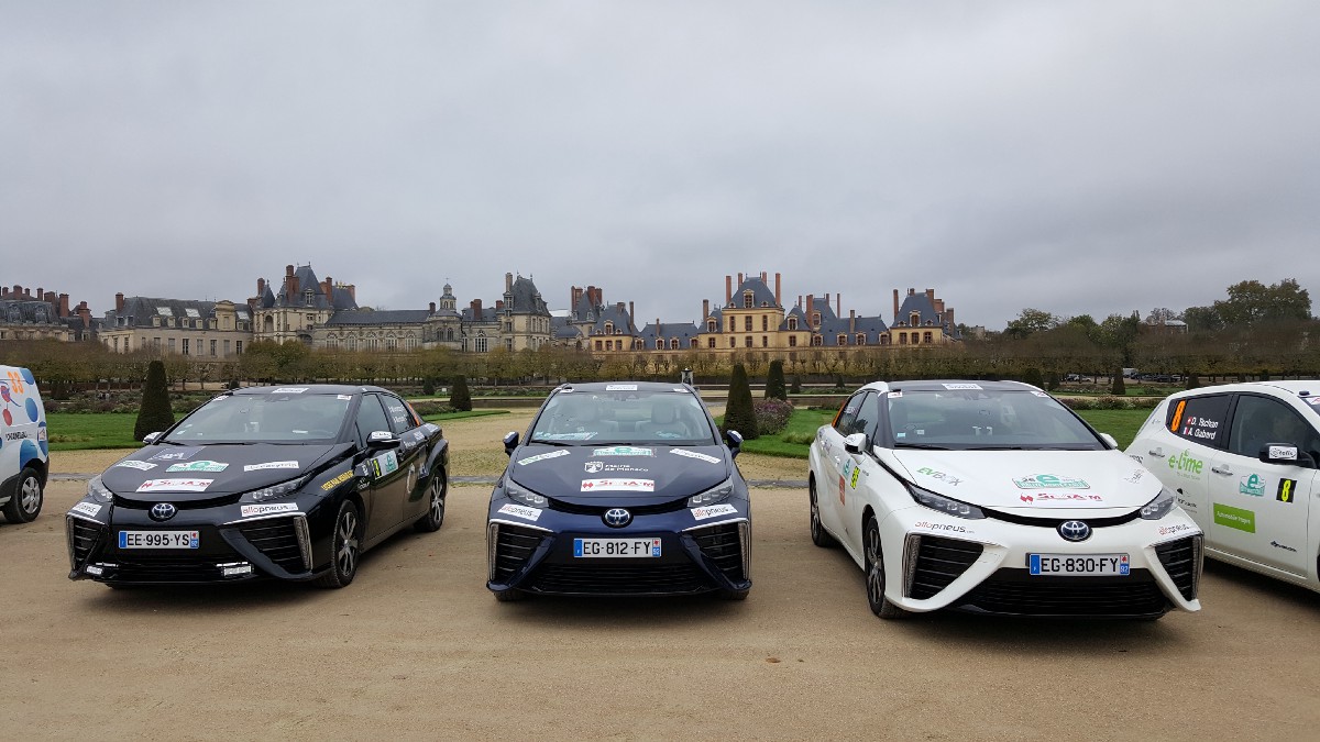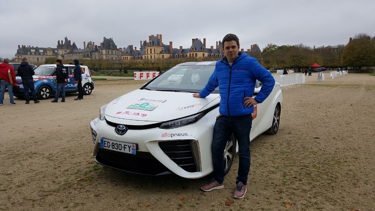 As a longtime motorsport enthusiast, Alexandre Stricher has worked for several years as a publicist in the rally world. But since 2015, Stricher has strapped on a rally helmet to take part in the Monte Carlo eRallye (formerly the New Energies Rallye). In existence for nearly 25 years, the race features zero-emission cars competing in a regularity race stretching from Fontainebleau to Monte Carlo. After racing in a battery-powered electric car in 2015 and 2016, this year Alexandre Stricher competed in a hydrogen fuel cell electric car. Let’s meet the man behind the wheel. What made you want to participate in a race like the Monte Carlo eRallye? Alexandre Stricher posing next to the Mirai car before starting the race I’ve spent over fifteen years immersed in the world of rallying. My job allowed me to travel the world and follow the World Rally Championship. But — and this may seem surprising since we’re talking about rallying — I never got behind the wheel. I experienced some of the world’s most spectacular rally routes from the press room and the pitlane. I keep a close eye on the sport today, because I’m writing a book on the fifty greatest races in the history of rallying. But I never wanted to be a driver. I like rallies and I like driving, but I’m not willing to take the same risks as professional drivers. For me, eRallye events have it all. They are regularity races, which are different than speed races. They pack all the fundamental elements of a good rally: precision at the wheel, calculating the best time, finding the best route… How did you get the chance to participate in this race? I’m a big fan of rallying, as well as the future of mobility. I had my eye on this rally in particular, wanting to take part in it for about ten years. I had the chance to enter the race behind the wheel of a Renault ZOE in 2015 and 2016. This year I had the opportunity to drive a Toyota Mirai. It was such a thrill for me to complete this challenge in a car that symbolizes the future! Did you notice any differences between your experience with the Renault ZOE and the Toyota Mirai, a car equipped with a hydrogen fuel cell engine? The ZOE is a more compact city car. For a long race like this rally, where the route traverses all of France, it’s much more comfortable to drive in a large sedan like the Mirai. My co-driver brought a lot of luggage with him, and he was still able to stretch out and relax in the car (laughs). The eRallye started in Fontainebleau, France Under the hood, hydrogen cars run on an electric engine. So the driving experience feels very similar between hydrogen fuel cell vehicles and battery-powered cars. Both engine types offer a very comfortable experience at the wheel: you get all the engine torque as soon as you press down on the gas pedal, with no need to shift gears. Unlike cars with manual transmissions, electric cars shift gears seamlessly, with no jolts or torque interruption. As far as I’m concerned, electric engines deliver the best driving feel, hands down. I mean that purely in terms of mobility: not sports driving, where you might be looking for a more turbulent feel. What do you think is the main difference between electric-battery cars and hydrogen cars? Refueling is the critical difference. When my co-driver and I were prepping for the rally, we stopped at the hydrogen station at Orly Airport. It took us about 3 minutes to charge the tank. That’s revolutionary for an electric car. It really frees you up and changes everything compared with a battery-powered car: no need to park the car and wait for several hours! By contrast, I once plugged a Tesla Model S into my 220-volt outlet at home: it would have taken 30 hours to reach full charge! “Three or four minutes later, your tank is full and you’re ready to roll.” That inconvenience makes a big difference on the rally course. Depending on their battery life, electric cars need to stop once or twice during each stage. But remember that there may be 40 electric cars along the same route. So the first car gets to plug in at the best-positioned station, and maybe the second car can plug into the other outlet if there is one. But all the other cars will have to find their own station. Twenty cars will fill up all the stations, so everyone else has to wait for a competitor to finish charging before they can plug in, and that process can take up to several hours. It’s a tough nut to crack! What is the process for refueling a hydrogen car? Presicion is of the essence in this regularity race It’s just like filling a gas tank: you insert your credit card, remove the fuel nozzle from the pump and insert it into your gas tank. You hear a “click” meaning that the system is locked in place and charging can begin. The only difference from a gas-powered engine is that you don’t have to squeeze the pump handle while you refuel. So it’s hands-free, which means your fingers won’t freeze in winter! Three or four minutes later, your tank is full and you’re ready to roll. It’s also a much cleaner area in general. How many times have you had to step over a puddle of gasoline while filling up your tank? What kind of mileage do these cars offer? That was one of our biggest questions during the rally. Neither my co-driver nor I were familiar with the Mirai, so we had no idea how far we could go on one tank — especially since mileage can vary widely. All electric cars, whether they run on a battery or fuel cell, share the same constraints: the faster you drive, the less mileage you get. Driving at 150 km/h for 10 kilometers can cost you 50 kilometers of mileage. “If the network of stations can grow, and if all the different stakeholders in society work together to integrate this molecule into our gas tanks, then hydrogen may emerge as THE solution for tomorrow’s mobility.” We were told we could count on getting 400 kilometers from the Mirai, with a homologation cycle at 500 kilometers