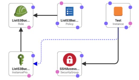 CloudFormation allows you to manage your AWS infrastructure by defining it in code. In this post, I will show you guys how to create an instance and attach an role to it so you can access your buckets. EC2 IAM S3 First, you’ll need a template that specifies the resources that you want in your stack. For this step, you use a sample that I already prepared: template The template creates a basic instance that uses an with . It also creates a security group which allows access from anywhere. EC2 IAM Role S3 List Policy SSH Note: I used also the section to declare values that can be passed to the template when you create the stack. Parameters Now we defined the template. Sign in to then navigate to , and click on “ “. Upload the file: AWS Management Console CloudFormation Create Stack JSON You would be asked to assign a name to this stack, and choose your EC2 specs configuration & SSH KeyPair: Make sure to check the box “ ” in order to create the & : I ackownledge the AWS CloudFormation might create IAM resources IAM Policy Role Once launched, you will get the following screen with launching process events: After a while, you will get the message in the status tab: CREATE_COMPLETE Once done, on the output tab, you should see how to connect via to your instance: SSH If you point your terminal to the value shown in the output tab, you should be able to connect via SSH to server: |ssh ec2-user@52.91.239.135 -i vpc.pem Let’s check if we can list the S3 buckets using the : AWS CLI |aws s3 ls Awesome ! so we are able to list the buckets, but what if we want to create a new bucket: It didn’t work, and it’s normal because the attached to the instance doesn’t have enough permission ( action). IAM Role CreateBucket