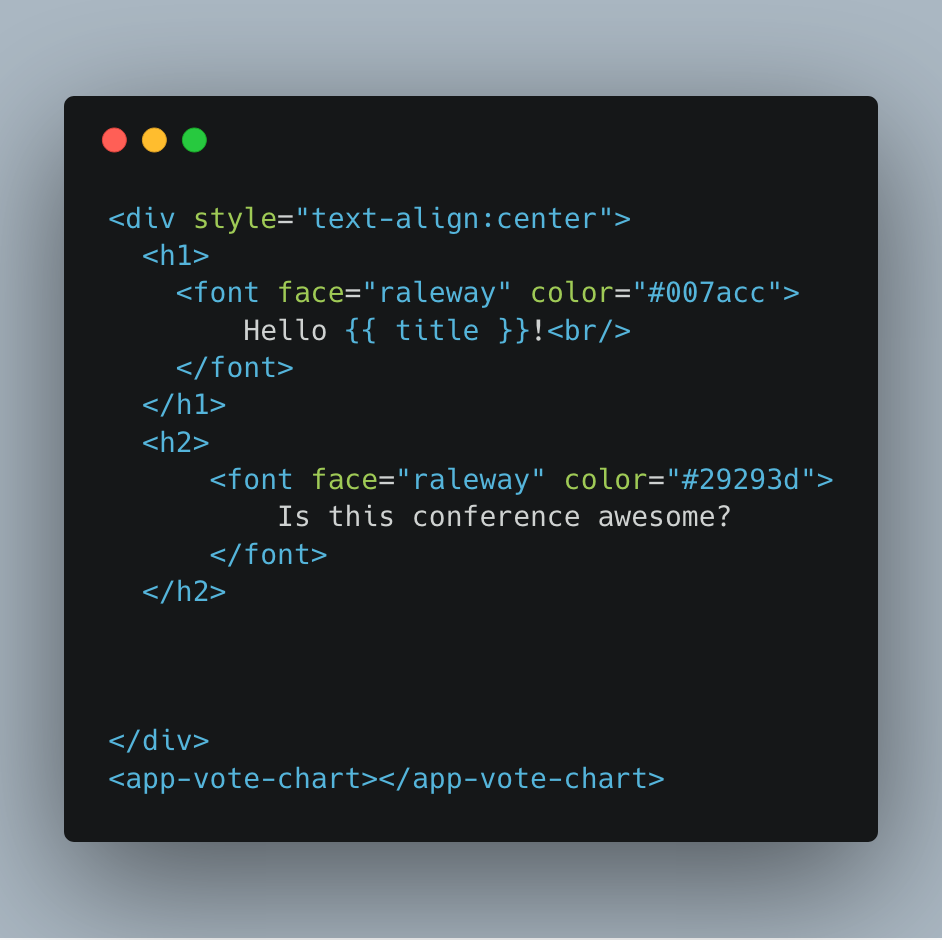 Note that a new tag ‘app-vote-chart’ is also added which will hold the content from the new component that we created earlier.