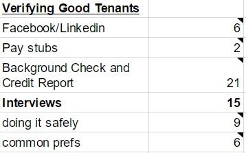 A reflection on building and managing a product What is Welcome Home (V2)? Welcome Home is a website that connects high-quality roommates with similar living habits. Housing is absurdly expensive in coastal cities, but having roommates can save you >20% on rent on higher-quality rentals and can build a social support system critical for mental health and opportunities. But it’s hard to find good roommates because Craigslist does not vet quality roommates and you can waste a lot of time finding people with the same set of location and living habit preferences on Facebook or Roommates.com. As a result, Welcome Home helps you use your first- and second-degree connections — verified by linkedin, facebook, and past references — to find compatible roommates easily. While I built out the initial prototype myself, I’m currently working with freelancers. Given that I’ll be working at a law firm, I’ll have less time to dedicate to the project, but I still believe that there is potential in helping people build healthy communities in their home, which is currently a frustrating process to build. Note: this is a second iteration of Welcome Home; the first iteration dealt with modular furniture. I decided to pursue this in order to get at the same problem of reducing rent but attempted the simplify the problem and solution. Why Roommates: Good Personal Experience + Problem Fit I built Welcome Home because of my experiences as a resident adviser for Harvard undergrads. Lots of my residents complained about finding housing with roommates, and how time-consuming and awkward that process could be, especially when it led to roommate conflicts later. Being a Millennial renter for the last 6 years, I had plenty of friends who struggled with the same things and echoed the complaints of my residents. Finally, as a resident advisor at one of Harvard’s largest dorms, I got to see the community living experience firsthand. Having roommates is the name of the game on campus. I navigated roommate disputes, helped create community norms, and organized events. Testing that the problem — finding vetted roommates — really exists Initial Interviews To set the stage, I started by talking to a few friends about how they found their roommates and how difficult it was for them. Most commented that if they were just moving to a new city or if they didn’t have a strong network, it was time consuming to search and find a roommate. I discovered that people preferred to use their personal networks first (by messaging people on facebook and others), posting on their facebook wall or in facebook housing groups, and using craigslist, if all else failed. Craigslist was the last choice because people on there get a bad rap. Social Listening I wanted to confirm these thoughts with a broader sample size. I analyzed quora posts, reddit posts, and other articles online searching “roommate finding tips.” I synthesized the most common concerns in a spreadsheet. Craigslist I discovered that people were scared of craigslist for several reasons: People approach craigslist cautiously because they’re trying to find ways to verify tenants. In my analysis of comments about craigslist, I discovered that these were the main strategies people used to protect themselves from bad tenants or roommates. The numbers represent how many people used that strategy. Common ways people verified their tenants or roommates. Here are some representative quotes Don’t be won over by an applicant’s smile and charming personality. Performing a background check will alert you to problems that can be easily hidden during an interview. NO WAY NO WAY don’t find roommates on craigslist…not unless you can afford an EXTENSIVE background check on someone. People are WEIRD< CRAZY< and just plain scary a lot of times. Using Buzzsumo, I looked at the most shared articles about Craigslist were not positive. People waste a lot of time on craigslist trying to avoid scams or low-quality messages. Common complaints about roommates and tenants online Here’s what some people had to say about using Craigslist “Honestly I’m super happy I was able to find this house because digging through craigslist was a nightmare. Lots of listings without pictures, some listings not in english, lots of listings without relative locations listed. Also lots of craigslist listings that are spam-posted with different wordings/phrasings. Also lots of rooms listed as rooms that are just living rooms or shared bedrooms” “I get bombarded with low quality responses. I mean one sentence responses, responses that sound “shady,” people who sound irresponsible” “I get so many junk replies it seems like I’m getting no qualified tenants.” People wanted compatibility Common solution to the desire to find roommate compatibility. Representative quote: Sure, people can still break rules etc. but if you bring up these ideas when you are considering someone for a roommate, you can avoid people that you won’t enjoy living with! Facebook Next to Craigslist, facebook is a huge substitute, especially if people prefer to go through their existing network to find a roommate first. But I saw major complaints there as well. People wasted time emailing back and forth about life habits and verifications. There’s no easy way to filter compatible roommates by location, dates, costs, and neighborhoods. Facebook isn’t designed to help people find roommates easily. Here’s what some people had to say: “Super hard to do this when you don’t have any friends who are also looking” “Some people have different living expectations/desires and it can be hard to harmonize location/price/space/amenities/etc.” “In response to the use of facebook groups: *people are not responsive; *you don’t have a way to search for locations or cost; *you can’t find features of a room, like air conditioning easily” Roomi and Roomster While these two services focus on posting listing