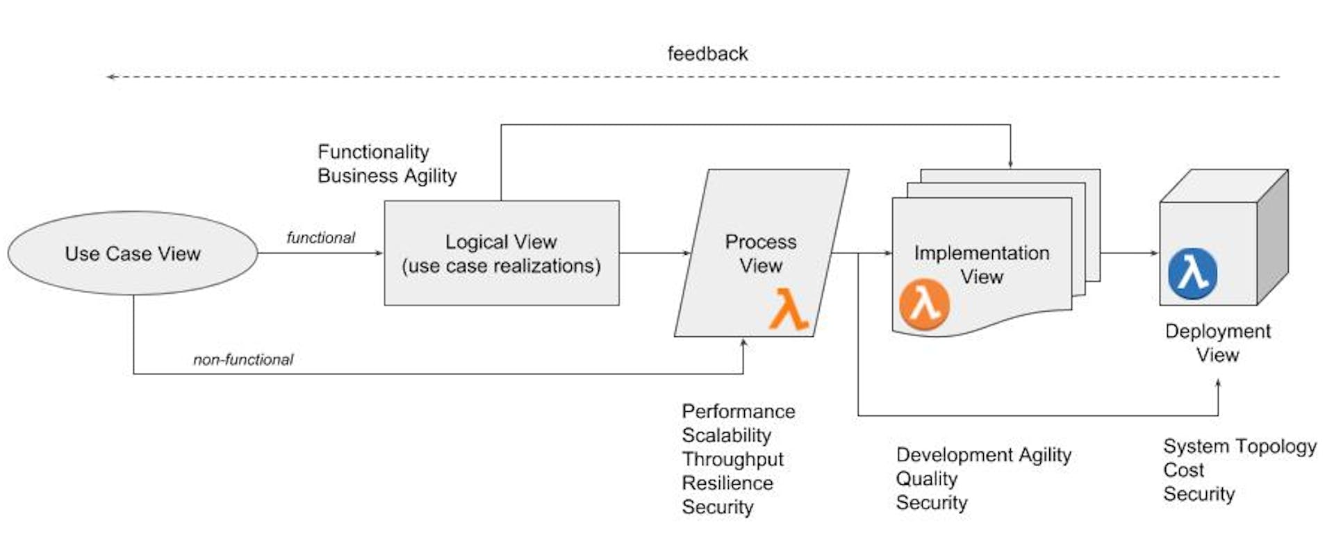 What’s the Problem? With computing platforms we, developers, can at last put aside all irrelevant technicalities and start delivering what we are payed for — business features. It is, indeed, a potentially tectonic shift in the software industry (S. Wardley suggests some important on the subject). Serverless software strategic insights _To explain this, I’m going to have to recap on some old work with a particular focus on co-evolution._hackernoon.com Why the fuss about serverless? What does this picture mean and why we call it “Architecture”? But look at the picture above. This is how we typically document our Serverless architectures. It is impossible to assign precise and unambiguous meaning to neither the individual elements, nor the diagram as a whole. This diagram is too ambiguous. Which one to use and when? Typically, it is hard to decide which icon variation to choose in what circumstances. Do they all mean the same and it’s just a matter of taste? Or they all are different and the choice depends on context. How to pick up the right context then? Here is a diagram from the official : AWS Serverless Web Application Workshop AWS Serverless Web Application Workshop Architecture This diagram seems to tell us that there are five services, which in principle could talk to each other and that Web Browser could talk to some of them. It conveys very little, however, about how the application is built and what it does. AWS This diagram is not very much useful for conducting architectural analysis of latency, throughput, security, availability, cost, or productivity. There is no way to separate core business functionality from generic or auxiliary components. There is no way to identify duplication scattered across multiple applications. There is no way to compare multiple options and to justify choosing one over another. Furthermore, this diagramming style does not scale beyond the scope of very simple applications. When the application size grows, intellectual control over its structure is usually lost. At Serverless Meetups, it’s not uncommon to hear worrisome stories about startups, which produced ~500 Lambda Functions within 6 months of development; and now, nobody has a clue what’s going on and how to maintain them. Sometimes it makes an impression that Serverless computing is just a new fancy way to mess ourselves up beyond all recognition. There are some more advanced topics here. Software architecture blueprints have to constitute a solid basis for system observability. The same blueprints have to help with strategic planning: which parts of our application are mostly likely to be commoditized by the could vendor (using the ) and how our open source strategy should look like (to get it right you will probably need to read the whole ). How all this could be possibly done by using pictures that do not have precise semantics? ILC model book _The use of topographical intelligence in business strategy_medium.com wardleymaps Today, we do not have an adequate, rich, yet consistent language to address all these concerns; and we desperately need it. What Could be Done About It? As a running example, I will use a sample application presented by AWS solution architects at the “Rapid Development using Serverless Infrastructure” track of the recent AWS Summit 2018 in Tel Aviv. The application is called MakirOto (“knows him” in Hebrew). It’s a cute application demonstrating many AWS Serverless capabilities. Here is how the MakirOto overall architecture was presented on the stage: MakirOto Architecture On this diagram, there is mixture of icons designating AWS services, such a Rekognition and API Gateway, and individual resources, such as Lambda Functions and S3 Buckets. It’s unclear whether the icons representing Lambda Function mean instances, Lambda Function specifications (aka ) or individual deployments within particular AWS region. SAM templates Before we start making improvements we first need to understand and document precisely what the system does. More specifically, how the system interacts with its external actors (Use Case Model), and how these Use Cases are realized by the system internal components (Logical Model). Use Case Model Here is a Use Case model for MakirOto as I managed to understand it from the presentations (available in Hebrew on ): YouTube MakirOto UseCase Model Proper modeling of architecturally essential use cases is typically bypassed, causing any subsequent technical debate to lack a reasonable starting point, defined by user needs. Nowadays, the very term “Use Case” is too often applied incorrectly to anything which might have a slightest smell of . use To keep this paper self-contained here is a semi-formal definition of the term “Use Case” I normally apply: “ Use Case is a closed interaction between external actors and the system, normally initiated by some actor to accomplish a particular goal”. The Use Case model above does not say too much, but it does provide us with the right context for discussing architectural decisions. This is so important, that I want to stress it one more time: until we have a clear and agreed upon picture of how the system interacts with its external actors to deliver some value, we should not start any technical discussion of how the system internals are organized. The first Use Case, “Sign Up”, is typical for many interactive systems. In MakirOto signing up new user assumes sending confirmation code via email , uploading the user picture, and extracting additional personal information from social networks. The seconds Use Case, “Recognize”, reflects the main value proposition of the system — it is THE major architecturally significant Use Case that justifies the system to be developed in the first place. The rest, including the “Sign Up” Use Case, will be needed only to support the “Recognize” Use Case. Supporting Use Cases might be technically very challenging (or interest