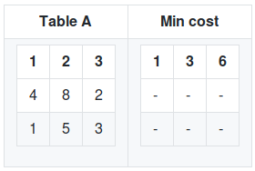 minarr[i][0] = minarr[i-1][0] + a[i][0];where m is the number of columns