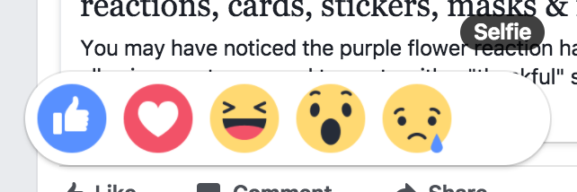 Through my experimentation, I found 5 hidden Facebook Reactions: Yay, Confused, Selfie, Fire, and… Airplane? The only ones that had an icon were Fire and Airplane.