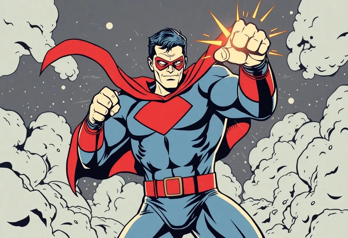 "a generic superhero powering up vintage artstyle"