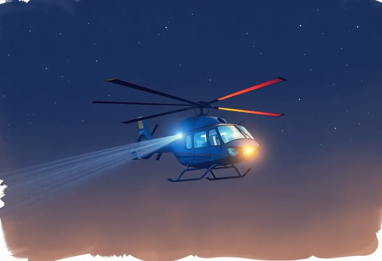 "a helicopter with a search light night sky lo fi sketch color"