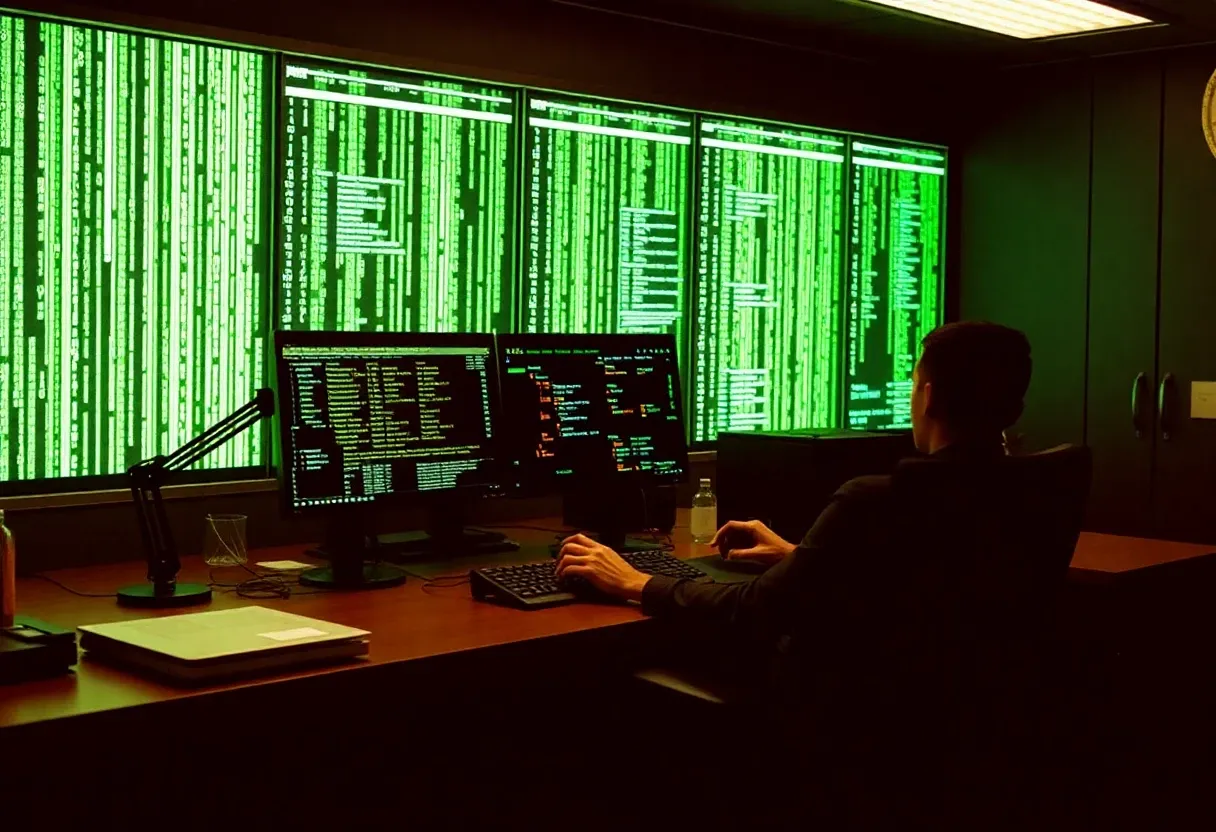 "agent smith (from matrix) at this desk doing small repeatable tasks in a endless loop"