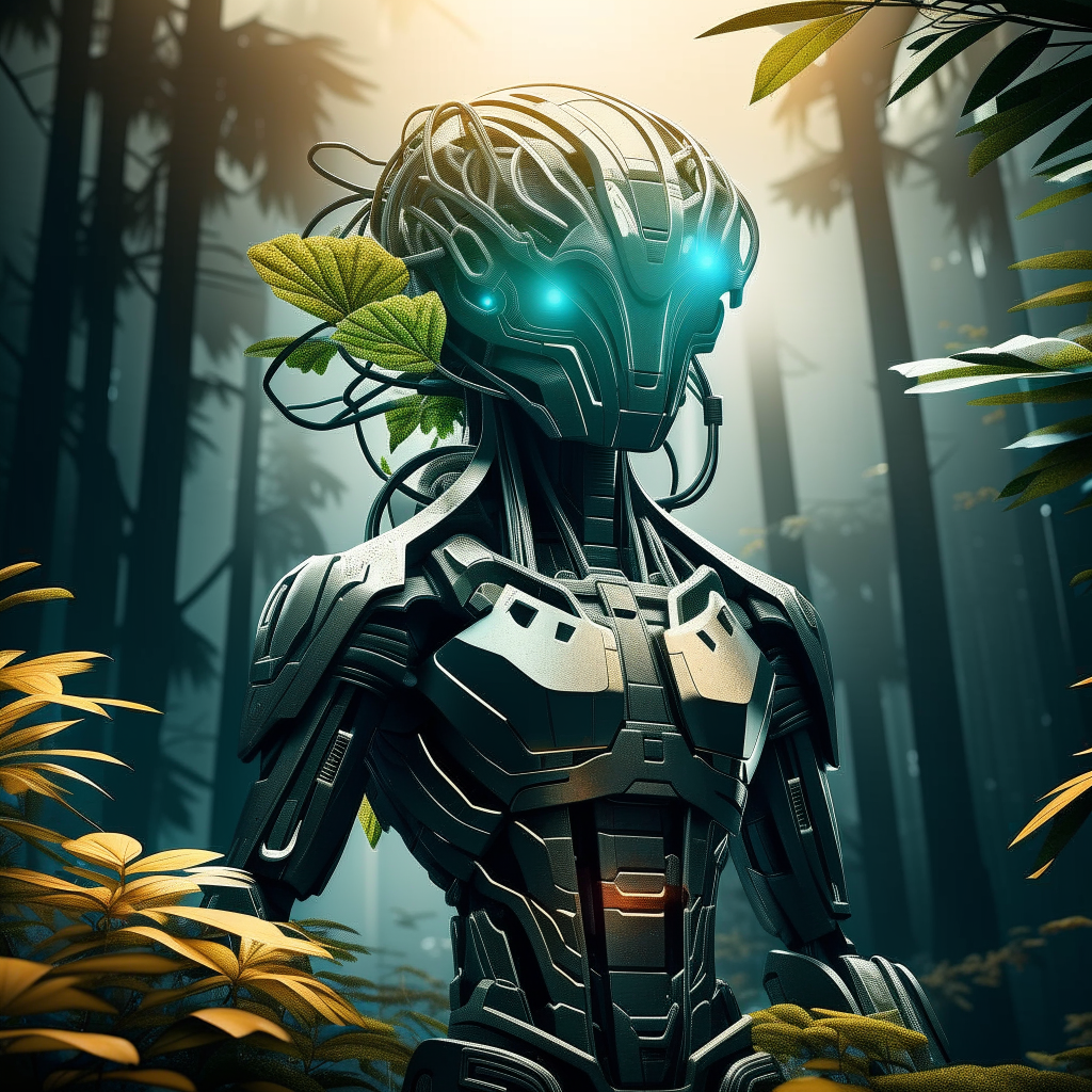 "Benevolent AGI with Ultimate Power A Beautiful, Nature Inspired Picture"
