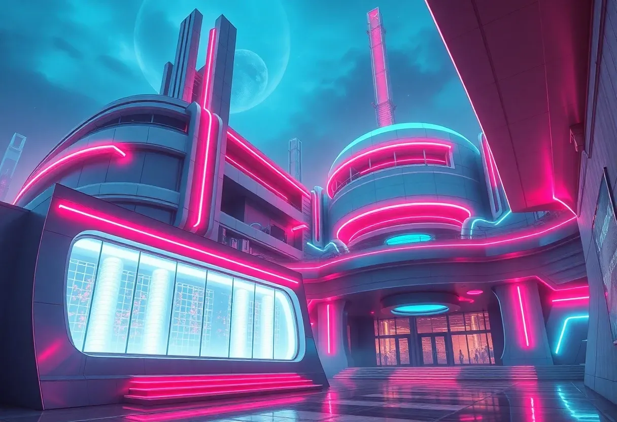 "futuristic architecture bright neon"