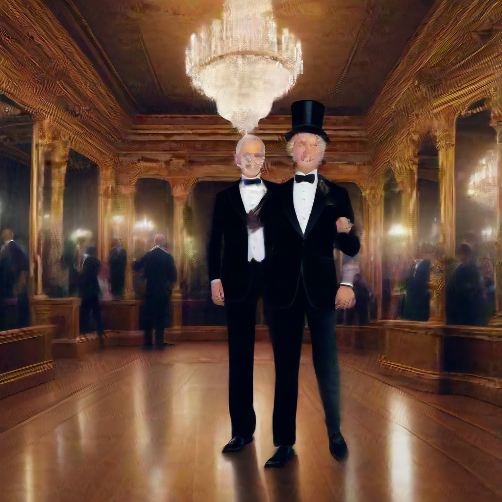 "Joe Biden in a tuxedo pulling a rab bit out of a top hat in a carnival hall of mirrors"