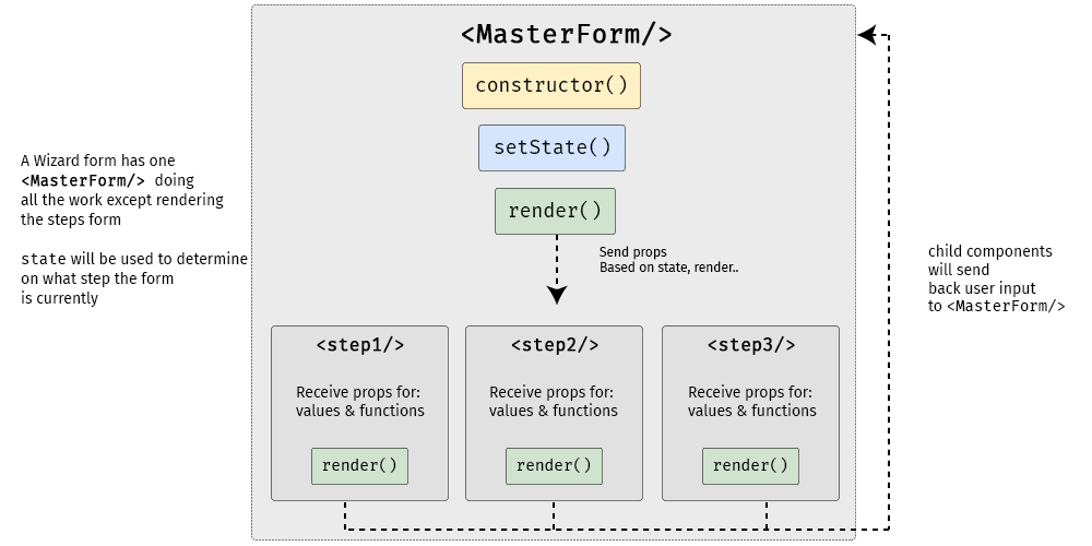 Have you went through the official React’s Tic Tac Toe tutorial? If you have, you might notice this text in the introduction bolded You might be tempted to skip it because you’re not building games — but give it a chance. I’m guessing even React team knows that it’s not that interesting to build a Tic Tac Toe game, since they put that line in. While the project indeed gives you an understanding of React, you’ll need a strong will to process the tutorial. Now don’t get me wrong, I’m grateful for this introduction project, but I just it. If you’re thinking the same thing, I’m going to write about alternative projects that you can build to learn React in this tutorial. don’t like So what front-end projects you can pick up to learn about React? As I went through tutorials and blog posts, I noticed a good introduction tutorial for React must do these things: Teach the fundamentals of React like components, state and props Handling dynamic data, changes in state and props Shows the use of lifecyle method Well, almost everything from the tab, really. main concepts Core React knowledge right in this tab! By the end of this tutorial, you will have a better understanding of the uses of React concepts like components, state and lifecycle methods and how they are used in common web application UI. Table of Contents Front-end fun with list of cards Getting Complex With Wizard Form GitHub Search App Conclusion Note: For the CSS part of this tutorial, we’ll use Bootstrap to make it look nicer without writing our own CSS. You can safely ignore the _className_ parts of the sample code, since they are from Bootstrap Front-end fun with list of cards Let’s start with utilizing JSX, components and props — the basic ingredients of a React UI. Here is our final product: A list of cards with React So let’s build it. All we have to do is to create the Component which returns JSX elements: <Card/> function Card(props) {return (<div className="card"><img className="card-img-top"src=" "alt="cap image" /><div className="card-body"><h5 className="card-title">Title Placeholder</h5><p className="card-text">Description Placeholder</p><a href="#" className="btn btn-primary">Learn more</a></div></div>);} https://via.placeholder.com/600x250.png And then create a parent component that renders three times. We can name it <Card/> <CardList/> function CardList() {return (<div className="row"><div className="col-sm-4"><Card /></div><div className="col-sm-4"><Card /></div><div className="col-sm-4"><Card /></div></div>);} Don’t forget to add the call at the bottom of the code. This is the code responsible for bringing our React application into our HTML element. ReactDOM.render ReactDOM.render(<CardList />, document.getElementById('root')); Next, we need to include our own data into these cards, so pass some into it. props function CardList() {return (<div className="row"><div className="col-sm-4"><Card **"** /></div><div className="col-sm-4"><Card// your data/></div><div className="col-sm-4"><Card// your data/></div></div>);} featureImage=" https://sebhastian.com/static/eb0e936c0ef42ded5c6b8140ece37d3e/fcc29/feature-image.png "title="How To Make Interactive ReactJS Form"description="Let's write some interactive form with React"link=" https://sebhastian.com/interactive-react-form And then use these props in our component: <Card/> function Card(props) {return (<div className="card"><img className="card-img-top" src= alt="cap image" /><div className="card-body"><h5 className="card-title"> </h5><p className="card-text"> </p><a href= className="btn btn-primary">Learn more</a></div></div>);} {props.featureImage} {props.title} {props.description} {props.link} Now this component used JavaScript in its JSX, pretty similar to templating engines, isn't it? <Card/> You might be wondering, “why do we use instead of for declaring component?” function class Because we don’t keep or use lifecycle methods. React components are declared as a in order to use those two things (although now we can do it with React hooks as well, but we'll leave hooks out for now.) state class As we can see in the example, React’s UI are made of three basic ingredients: components, JSX and props. is a single piece of UI made out of methods and JSX. Component is HTML supercharged with JS, enabling us to describe UI using JavaScript syntaxes. JSX are arbitrary inputs that we pass down into a component. Props There really is not much more we can learn from this simple static cards except basic UI patterns, so let’s move on to a more complex task. Getting Complex With Wizard Form In this second exercise we will build a wizard form, which is a multi-step form designed to ease the filling process for a long and complex form. By only showing a few inputs on a screen, users will feel encouraged to fill the blank inputs rather than feeling overwhelmed and potentially abandoning the form. Let’s take a look at how you can build a form like this with React: React wizard form The easiest way to create a multi step form is to create a container form component, which contains all the wizard step component inside of it. This diagram will help you understand it clearly. React wizard form diagram Although it seems to be more complex than a regular form, a wizard form still use the same React principle. But since we have in this exercise, we need to include a new principle: state is used for storing dynamic data State Instead of having one form component, we will have one parent component and three child components. In the diagram above, component will send data and functions to children components via props, and children components will trigger function to set values in the of . We'll need a function to move the form from one step to another as well. <MasterForm/> handleChange() state <MasterForm/> Just like how send props to , These children components will receive props from for and props. CardList Card <MasterForm/> value onChange compone