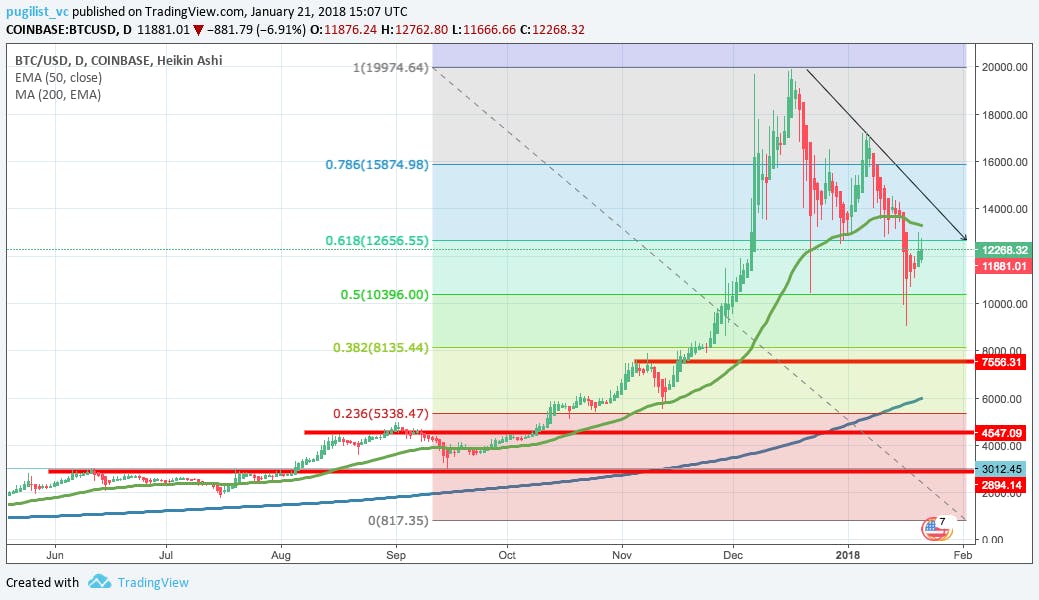 Current state of affairs (updated) The cryptomarkets have experienced a downward slide in 2018. The technical analysis (TA) charts for major crypto assets continue to form a downtrend in prices; even with the most recent bounce. February 4, 2018 Further food for thought (updated) 50 day trending towards the 200 moving average, levels appear only a matter of time, and less than strong until the $4,500 — $6,000 range. TA Indicators: moving average fibonacci retracement support Still Valid. Retail investors who missed the Q4 “pump,” wanting to gain access to the cryptomarkets were either unable because of ill-equipped exchanges or deterred by technological layers. We have heard countless anecdotes as such. Lack of New Demand: The new development regarding Bitfinex and Tether potentially manipulating the price of BTC in 2017 makes this element all the more dangerous in the short term. Most bull markets shake off bad media news as prices continue to push higher. This happened all throughout 2017, but has since halted in 2018. Every negative press release seems to hurt the markets. Negative News: Still valid and seems to be a continued strategy by governments around the world. Newly minted crypto-millionaires who are watching their paper fortunes drop 30% may begin or already have begun to sell some portion of their crypto holdings, which further exacerbates the downward price pressure. It is basic human nature to fear losses more than desire gains. Furthermore, a recent article highlights how some of these investors may be rotating into Gold as a safer haven. Self Preservation: Cointelegraph Still valid. Reflexivity works the same way on the downside as it does to the upside. Simply put, price decreases change investor’s expectations downward, which affect the market’s fundamentals negatively, which begets further price depreciation. Rinse and repeat until a bottom is found. Reflexivity : Still valid and could potentially be vastly accelerated if the Bitfinex / Tether scandal is proven true. Historicism No one knows the future but the historical context is foreboding. Analysis of prior bubbles show that an accelerated velocity of price appreciation usually collapses shortly thereafter; approximately within 12 to 18 months. The cryptomarkets are at least 12 months into this acceleration phase. The dotcom bubble started as a normal bull market but then transformed into a bubble when the price growth turned exponential from October 1998 to March 2000. From peak to trough, the Nasdaq fell ~77% in value. Once again, Oil started out as a bull market and then price growth turned exponential from January 2007 to July 2008. Almost eerily, the peak to trough price plunge was ~77%. After reviewing the data, I would not consider Gold a bubble but rather an asset that was driven by changing economics, i.e. excessive monetary base creation to finance wars and stave off a depression, coupled with libertarian accumulation of a “hard” currency to fight impending hyperinflation (read as to why this is probably folly). Gold’s growth was far more reminiscent of a strong bull market and the subsequent fall was less severe than the Nasdaq and Oil; the peak to trough decrease was ~44%. Steve Keen Pugilist Ventures created a weighted bubble index from the 2 “bubble” assets to gauge potential price deflation. We removed Gold because as stated prior, we did not necessarily consider Gold’s growth fitting the bubble model. Looking at this chart, we see peak to trough depreciation of ~72%. Reversion to the Mean $709.38 Bitcoin’s 9 Year Mean: Summary Humans are notoriously poor forecasters, and history only rhymes; it seldom repeats. However, the market action has made Pugilist Ventures very cautious in the short term and excited in the long term given this devaluation may permit the crypto ecosystem to refocus on long term innovation versus short term gains. Neither the author of this article, nor Pugilist Ventures, provide investment, financial, or legal advice. This cannot substitute for professional advice and independent factual verification. The content provided on this site is for informational purposes only and should not be construed as any kind of solicitation for investment in any investment opportunity. — — Disclaimer: