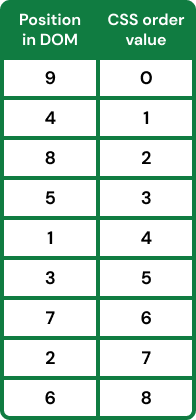 While creating user interfaces, we often encounter the problem that there is more data in our tables than can be fitted in the visible viewport. To achieve an excellent user experience on components like Gannt charts, data tables and spreadsheets, we often use the sticky CSS property on the header elements. This is a simple task when doing it only on one edge of the table. But what if we want to display a huge table and therefore need sticky headers on more edges simultaneously? This is the exact problem we faced while building our ReactGrid and in this article we want to share the solution we have found. In this guide, we will show you how to create the layout to achieve a native scroll behavior with sticky headers like those shown above . without using any JavaScript What are the benefits of the proposed solution? native support from modern browsers, excellent user experience (intuitiveness, swiftness), additional elements in the scrollable view do not affect the UX, no JavaScript, only CSS and HTML, works perfectly on touch devices, avoids using z-index not to affect other elements on the website (needs z-index style values in Firefox with this solution). You will learn how to place elements in the DOM and style them to achieve fully functional scrollable sticky panes using flexbox step by step. It’s working and has been tested on the following browsers (remember, Firefox needs z-index style values). Placing Elements in the DOM using FlexBox The first and most important aspect is the correct order of the elements in the DOM because elements that appear later in the DOM will overlay other elements. Let’s imagine that we want to create a layout with sticky headers on each edge. Therefore we need to divide our surface into 9 panes. Of course, the same procedure also applies to a smaller number of sticky edges. We place everything in two DIV tags. The first with CSS property to have a scrollable view. The second with the following CSS properties: overflow: auto position: relative; display: flex; flex-wrap: wrap; justify-content: flex-start; align-items: flex-start. The graphic above illustrates the proper DOM order of the elements. The first element should be the one in the center of the layout, let’s call it “middle-center-pane”. It’s the only DIV element which has a relative position in its CSS styles. The next elements, in order from the least to the most important, are bottom-center-pane, middle-right-pane, top-center-pane and midlle-left-pane. These elements have sticky positions in CSS styles. The same situation applies to the elements located in the corners of the view. We placed them in the order: bottom-right-pane, bottom-left-pane, top-right-pane, top-left-pane. < = > div class "scrollable-element" < = > div class "panes-wrapper" < = > div class "middle-center-pane" </ > div < = > div class "bottom-center-pane" </ > div < = > div class "middle-right-pane" </ > div < = > div class "top-center-pane" </ > div < = > div class "middle-left-pane" </ > div < = > div class "bottom-right-pane" </ > div < = > div class "bottom-left-pane" </ > div < = > div class "top-right-pane" </ > div < = > div class "top-left-pane" </ > div </ > div </ > div Now we know in which order the panes should be placed to achieve the correct overlay behavior. However, we need more. For example, our top-left-pane is the last element in the DOM and will be rendered as the last one on the screen. What we need to do is to change the visual order of the elements. This can be achieved by using the CSS property. order Let’s use the illustration above and place an arrow to help us sort the elements in the right order. We need to go from the top left corner to the bottom right corner. This will make it easier for us to create a table to define the CSS flex order property for our sticky header elements. We have created a solid basis to achieve the desired behavior. The panes are positioned in the right order and their overlay behavior is as expected. Now we need to set additional required CSS values for them. For our sticky header elements we should set and the proper and CSS values. position: sticky top, right, left bottom Now we can set the size of the panes. First, we set the width and the height of the “scrollable-element”. Of course, it needs to be smaller than the content, to display some scrollbars. Then, the width and the height of the “panes-wrapper” should be the sums of the widths and heights of containing panes. If you have reached this step, your result might already be working as expected, but you have probably noticed that the bottom panes are covered by the top panes while scrolling. The same behavior also happens to the left and right panes. To avoid this overlay we need to add some margins to the panes, so that the bottom and top panes, and also the left and right panes push each other away. At the beginning of the article it was mentioned that if you want to be compatible with Mozilla Firefox browser you need to set z-index CSS style to some elements. The table below shows the required z-index values. Summary & example application If you set all properties as shown in this article, you will be able to achieve the expected result. We also prepared a quick example which allows you to look at the whole implementation. Feel free to use our experience and save time while trying to achieve a satisfactory outcome or try our ReactGrid . Have fun :) Previously published at https://reactgrid.com/blog/how-to-build-a-table-with-concurrent-sticky-headers/