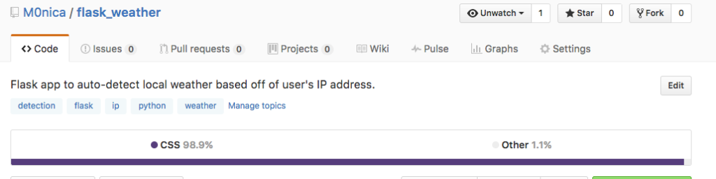 Is GitHub telling you that your repository is 98.9% CSS or HTML when it isn’t? Here’s how to resolve that issue every time. I recently started working on a to auto-detect a user’s location based off of their IP address. After committing some updates to GitHub my app switched from being labeled as predominately Python to 98.9% CSS even though it was a Flask application in which most of the code I had written was in Python and HTML. Now and again, I do not agree with how GitHub classifies the languages in my repositories so I set out to figure out how to fix this issue. Weather app in Flask Before: My Flask App Appeared in GitHub as 98.9% CSS. _flask_weather - Flask app to auto-detect local weather based off of user's IP address._github.com M0nica/flask_weather Pro-tip: Help GitHub properly detect your repositories main language(s). GitHub has a that auto-detects the language within every repository. Upon researching how to resolve GitHub misclassifying the language of your projects I found out the solution is as simple as telling GitHub which files to ignore. linguist library _linguist - Language Savant. If your repository's language is being reported incorrectly, send us a pull request!_github.com github/linguist While you still want to commit these files to GitHub and therefore can’t use a .gitignore you can tell GitHub’s linguist which files to ignore in a .gitattribute file. (Side note: if you are interested in learning about ). Check out my piece on “Hiding API Keys from GitHub” .gitignore _If you plan on programming any applications and storing your code on GitHub then it is important that you protect your…_www.blacktechdiva.com Hide Your API Keys 🔑 " Black Tech Diva Upon examining the documentation for the linguist library I learned that adding just one line to a .gitattributes file would resolve my language issues for this particular repo. My .gitattributes: This one-line file told GitHub to ignore all of my files in my static/ folder which is where CSS and other assets are stored for a Flask app. Vendor files can sometimes take up a lot of relative space so I am telling the linguist to just ignore them (since they were accounting for 98.9% of my project)! After: My Flask App Appears in GitHub now as 56.2% Python and 43.8% HTML. _A collection of useful .gitattributes templates_github.com alexkaratarakis/gitattributes Note: Updates to the .gitattributes may not apply retroactively and if linguist is wrong GitHub encourages you to report it as an issue in their /linguist repo. Here’s a repository by @with sample .gitattributes files for you try the next time you disagree with the linguist ;). truly I hope this article was helpful! I would love to hear some of your tricks for GitHub and am happy to answer any questions you may have. If you enjoyed reading this article consider tapping the clap button 👏. Wanna see more of my work? Check out my GitHub to view my code and learn more about my development experience at http://aboutmonica.com .