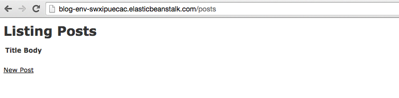 I previously posted instructions a year ago about how to do this in rails 4.1 on an old version of Elastic Beanstalk. This is the updated version. Deploying Rails apps can be tricky. For simple projects, tools like can be perfect. It’s great for prototyping apps and testing out different ideas without a lot of hassle. However, when your project gets more complicated and you want to have better control of your servers, load balancers, workers, auto-scaling conditions, etc, you will not have the flexibility you desire. Heroku There are many services that can be used to get a Rails app up and running quickly while still keeping full control of your infrastructure. One reasonable option is Amazon’s . The service is aptly described by Amazon as follows: Elastic Beanstalk AWS Elastic Beanstalk makes it even easier for developers to quickly deploy and manage applications in the AWS cloud. Developers simply upload their application, and Elastic Beanstalk automatically handles the deployment details of capacity provisioning, load balancing, auto-scaling, and application health monitoring. Now that Amazon having a fully-managed postgres-backed Rails app has never been easier! supports PostgreSQL via RDS You can find all of the code for this post at github.com/jtescher/example-rails-4.2-elastic-beanstalk-blog If you get stuck or have other issues the is pretty good. documentation for Elastic Beanstalk Getting Started Sign up for an account via the instructions at the and then download the Elastic Beanstalk Command Line Tools via Homebrew (or for PC). AWS AWS Console here $ brew update$ brew install aws-elasticbeanstalk Initialize the Rails app The most current version of rails at the time of this writing is 4.2.1 so that’s what we will use now. $ gem install rails -v 4.2.1$ rails new blog$ cd blog$ git init && git add -A && git commit -m "Add rails scaffold" Scaffold a Post resource We will be creating a simple example app that allows you to manipulate posts. To generate this in Rails use: $ rails generate scaffold post title:string body:text$ bundle exec rake db:migrate$ git add -A && git commit -am "Add post resource" Initialize the Elastic Beanstalk app Now we can initialize a new Beanstalk app through the eb command. $ eb init I would choose the following settings, but for a description of each option see the AWS example . here Select a default region3) us-west-2 : US West (Oregon) Select an application to use[ Create new Application ] Enter Application NameblogApplication blog has been created. It appears you are using Ruby. Is this correct?(y/n): y Select a platform version. Ruby 2.2 (Puma) Do you want to set up SSH for your instances?(y/n): n This will set up a .elasticbeanstalk directory in the root of your project and add it to your .gitignore file. You do not want your configuration stored in git because there could be private information in there. Let’s commit those changes now: $ git commit -am "Ignore elasticbeanstalk settings" Creating the Elastic Beanstalk environment You can have many environments per Elastic Beanstalk application. This can be useful for having both dev and production environments for the same app. To create a new environment, run the following: $ eb create blog-env: Creating application version archive "b303".Uploading blog/b303.zip to S3. This may take a while.Upload Complete.Environment details for: blog-envApplication name: blogRegion: us-west-2Deployed Version: b303Environment ID: e-g5mkeawrnzPlatform: 64bit Amazon Linux 2015.03 v1.3.0 running Ruby 2.2 (Puma)Tier: WebServer-StandardCNAME: UNKNOWNUpdated: 2015-04-19 23:38:50.955000+00:00Printing Status:INFO: createEnvironment is starting.INFO: Using elasticbeanstalk-us-west-2-83376862866 as Amazon S3 storage bucket for environment data.INFO: Created load balancer named: awseb-e-g-AWSEBLoa-7R0CSEMQ6W2MINFO: Created security group named: awseb-e-g5mkeawrnz-stack-AWSEBSecurityGroup-56IUD2ZYQ5FRINFO: Created Auto Scaling launch configuration named: awseb-e-g5mkeawrnz-stack-AWSEBAutoScalingLaunchConfigurat...INFO: Created Auto Scaling group named: awseb-e-g5mkeawrnz-stack-AWSEBAutoScalingGroup-2URXDKL0NCIJINFO: Waiting for EC2 instances to launch. This may take a few minutes.INFO: Created Auto Scaling group policy named: arn:aws:autoscaling:us-west-2:833768628226:scalingPolicy:02920f8b...INFO: Created Auto Scaling group policy named: arn:aws:autoscaling:us-west-2:833768628666:scalingPolicy:b143cea1...INFO: Created CloudWatch alarm named: awseb-e-g5mkeawrnz-stack-AWSEBCloudwatchAlarmHigh-APCUnlMHNIS1INFO: Created CloudWatch alarm named: awseb-e-g5mkeawrnz-stack-AWSEBCloudwatchAlarmLow-1UL48B2CC2OM8INFO: Added EC2 instance 'i-7f4b6eb7' to Auto Scaling Group 'awseb-e-g7mkeawrnz-stack-AWSEBAutoScalingGroup-2URX...INFO: Application available at blog-env-zckzptpdgy.elasticbeanstalk.com.INFO: Successfully launched environment: blog-env The environment should now be running. To see the status and URL: $ eb statusEnvironment details for: blog-envApplication name: blogRegion: us-west-2Deployed Version: b303Environment ID: e-g5mkeawrnPlatform: 64bit Amazon Linux 2015.03 v1.3.0 running Ruby 2.2Tier: WebServer-StandardCNAME: blog-env-zckzptpdg2.elasticbeanstalk.comUpdated: 2015-04-19 23:51:59.259000+00:00Status: ReadyHealth: Green The last thing that we have to do to get Rails set up is to add a environment variable. SECRET_KEY_BASE To generate a new secret key use: $ rake secretf655b5cfeb452e49d9182c6b5e6856704e6e1674082fa1e5f1a330782bad1833ba4cc30951e094f9250c87573dc0bbd3d46d37c5d79ff57... Then in order to add the secret to your elastic beanstalk environment, use: $ eb setenv SECRET_KEY_BASE=f655b5cfeb452e49d9182c6b5e6856704e6e1674082fa1e5f1a330782bad1833ba4cc30951e094f9250... Now if you navigate to [YOUR-ENV].elasticbeanstalk.com/posts you should see your posts index view: Using PostgreSQL with Rails Right now our app is just using SQLite, which is not made for production use and cannot be shared across instances. We c