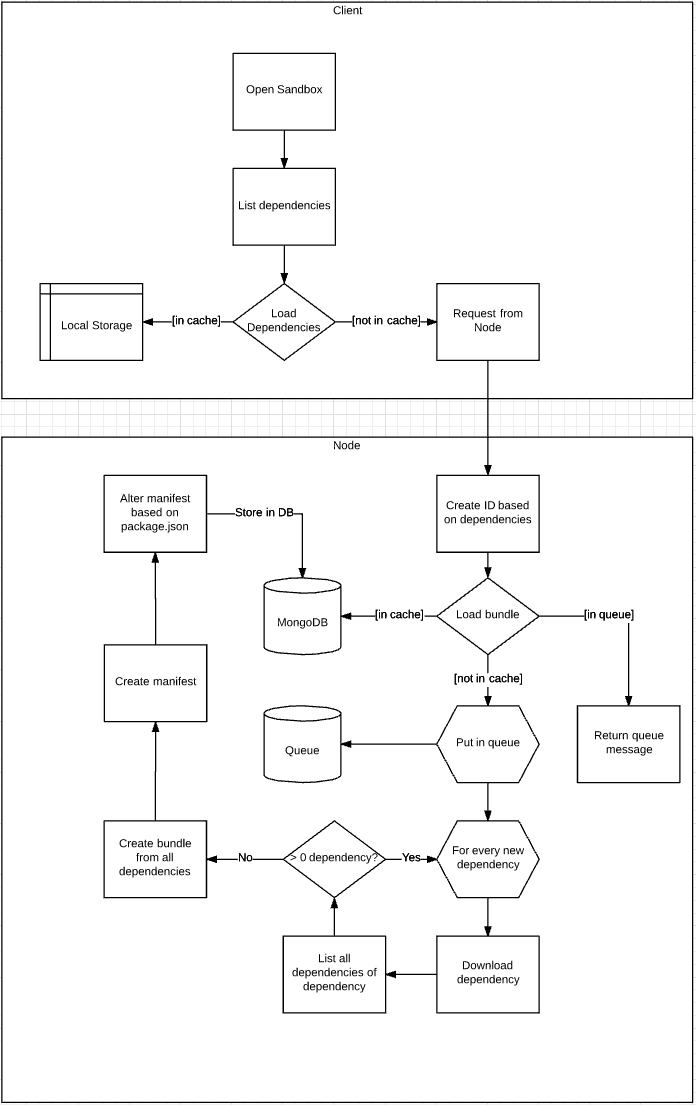 I always left npm dependency support out of scope during initial development of CodeSandbox. I thought it would be impossible to install an arbitrary, random amount of packages in the browser, even thinking about it caused my brain to block. Nowadays npm support is one of the most defining features of CodeSandbox, so somehow we succeeded in making it work. It took a lot of iterations to make it work in any scenario, we did multiple rewrites and even now we can still improve the logic. I’ll explain how npm support started, what we have now and what we still can do to improve it. ‘First’ Version I really didn’t know how to approach this, so I started with a very simple version of npm support: The absolute first version, importing styled-components and React (25 Nov 2016) This version of npm support was very simple. It wasn’t even really npm support, I just installed the dependencies locally and stubbed every dependency call with an already installed dependency. This, of course, is absolutely not scalable to 400,000 packages with different versions. Even though this version was not very usable, it was encouraging to see that I was able to at least make two dependencies work in a sandbox environment. Webpack Version I was quite satisfied with the first version, and I thought it would be sufficient for an MVP (the first release of CodeSandbox). I didn’t think it would be even possible to install any dependency without performing magic. That was until I stumbled upon . They already supported any dependency from npm, you could just define them in package.json and it magically worked! https://esnextb.in/ This was a big learning moment for me. I never dared to give proper npm support a thought, because I thought ‘it would be impossible’. Only after seeing living proof of its ‘possibleness’ I started putting more thought into it. I should’ve explored the possibilities first before dismissing the idea. So! I started thinking on how to approach this. And boy did I overcomplicate it. My first version didn’t fit in my head, so I had to draw a diagram: The first idea, probably wrong even There was one advantage of this overcomplicated approach: the actual implementation was much easier than expected! I learned that was able to bundle dependencies and spit out a JS bundle with a manifest. This manifest looked like this: Webpack DLL Plugin Every path is mapped to a module id. If I would require I would only have to call and I would get React! This was perfect for our use case, so I started typing away and came up with this actual system: react dll_bundle(3) The source of the service can be found here: . This service also contains code to publish any sandbox to npm (really cool), we scrapped this feature later on. https://github.com/CompuIves/codesandbox-bundler For every request to the packager I would create a new directory in , would run and let webpack bundle afterwards. I’d save the new bundle on gcloud as a way of caching. Much simpler than the diagram, mostly because I replaced installing dependencies with yarn and bundling with webpack. /tmp/:hash yarn add ${dependencyList} When you load a sandbox, we would first make sure that we’d have the manifest and the bundle before evaluation. During evaluation we would call for every dependency. This worked very well, and I got my first version with proper npm dependency live! dll_bundle(:id) Whoop! We got material-ui and react running dynamically! (24 Dec 2016) Now there was still a big limitation with this system. It didn’t support files that were not in the dependency graph of Webpack. This means that for example wouldn’t work, because it was never required by the entry point of the dependency in the first place. require('react-icons/lib/fa/fa-beer') I did release CodeSandbox with this version though, and got in contact with the author of . We used a very similar system to support npm dependencies and we were having the same limitations. So we decided to combine forces and build the packager! WebpackBin Christian Alfoni ultimate Webpack with entries The “ultimate” packager retained the same functionality as our previous packager, except created an algorithm that would add files to the bundle depending on their importance. This means that we manually added entry points, to make sure that Webpack would bundle those files too. After a lot of tweaking of this system we got it working for any(?) combination. So you were able to require react-icons, and css files as well 🎉. Christian The new system also got an architectural upgrade: we have one dll service that serves as load balancer and cache. Then we have multiple packagers that do the bundling, these packagers can be dynamically added. Packager teamwork! We wanted to make the packager service available for everyone. That’s why we built that would explain how the service works and how you can make use of it. This turned out to be a great success, we were even mentioned in the ! a website CodePen blog There were still some limitations and disadvantages to this ‘ultimate’ packager. The costs grew exponentially as we became more popular, and we were caching by package Which means that we had to rebundle your whole package combination if you added a dependency. combination. Going Serverless I always wanted to try this cool technology called ‘ ’. With serverless you can define a function that will execute on request, the function will spin up, handle the request and then kill itself after some time. This means that you have very high scalability: if you get 1000 simultaneous requests you can just spin up 1000 servers instantly. It also means that you only pay for the time the servers actually run. serverless Serverless sounds perfect for our service: it doesn’t run fulltime and we need high concurrency in case there are multiple requests at the same time. So I started playing eagerly with an aptly named framework called . Serverless Converting our service went 