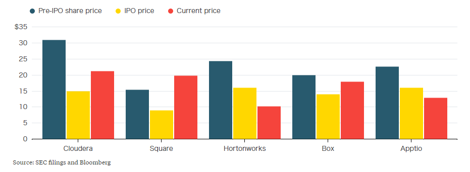 T in the tech sector are not only wrong — they are irrelevant. he recent spate of scare stories about declining prices If you’re a corporate investor looking to acquire a startup, this latest round of media noise, gossip, and chitchat is distracting. Rather than obsessing over the market and whether there’s a newly pumped-up bubble or not, you may well be a lot better off taking a step back; giving yourself the chance to ask not whether the price of Snap, Cloudera, or Alfa Financial Software is sensible, but whether — as an investor — it’s sensible for . you If you look at five poorly performing tech stocks, their declining values probably have much more to do with their individual business strategies than market conditions generally . Prices are indication of what the market is prepared to pay for shares in a business at any one particular point in time. More importantly yet, prices signal the value an acquirer feels it can extract from an acquisition target. So, rather than trying to look outside of your company to find the value of a startup target, look inside first. That is because prices don’t exist in isolation Tech is a fast-moving world, and so are the stories This latest round of hysteria started with about a string of startups who are, potentially, floating on the stock market at a price below their pre-IPO valuations. Cloudera was cited as the first tech unicorn to go public at a value “significantly” below its private valuation. HortonWorks and Apptio were also referenced. an article in Bloomberg The original graph from the Bloomberg article But, what’s the real news here? . Some go up, some go down. That is usually because a company’s individual strategy has succeeded or failed, its revenues are growing or shrinking against expectations, or its outlook is positive or negative. Companies fluctuate in price — and value — all the time For every company you can find whose valuation declined after going public, you can probably find another one that rose , and draw much bigger, wider conclusions — especially about an industry as diverse and broad as the technology sector. If you look at five poorly performing tech stocks, their declining values probably have much more to do with their individual business strategies than market conditions generally. It’s very difficult, if not impossible, to extricate the individual circumstances of company valuations For every company you can find whose valuation declined after going public, you can probably find another one that rose. Facebook is a case in point. Since its float in 2012 at a peak market capitalisation of about $100bn, it has increased in value more than fourfold. Currently its market capitalisation is over $430 billion. At the time it floated, you could find a lot of scare stories about the tech bubble and how Facebook was yet another example of an overvalued tech company that would eventually collapse. Five-year view of Facebook’s price on the NASDAQ (source: Google Finance) The same reaction took place when it announced it was acquiring Instagram for $1 billion. How very wrong they were. It’s natural to see price jumps when going from private to public You also hear a lot about private tech companies’ valuations jumping about all over the place. This volatility, we may think, is a signal that something is not quite right in the market. So, perhaps, it’s not that Cloudera’s price has declined, but that it has declined by so much so quickly. But that’s not clear either. . This is not volatility. It’s not even really correct to call it a “price jump” at all. It’s natural to see price jumps when a company is private, or goes from private to public , such as capital raises, acquisitions, or IPOs. And a very long time — usually years — can pass between these landmark events, meaning most of the time the true value of the company is hidden; whereas public companies are valued day-in, day-out on the public markets, meaning that price declines usually follow smooth downward curves. That is usually enough to explain what seems, on the surface, to be a rapid, immediate change in value. These fluctuations in price simply reflect the fact that private companies are typically valued only at landmark events The risk of scare stories, and why they truly matter The risk of all . You can see this happening in two ways. On one hand, the CFO of a major corporate might be scared off by the stories from acquiring a startup, thinking that a market correction is imminent and they could end up destroying value. On the other hand, they may sweep into the market, acquiring a startup at what they think is a bargain price without doing enough due diligence. this media noise around the price of tech startups is that it distracts strategic investors from making the right decision When a corporate is looking to invest or acquire a startup, they shouldn’t be thinking primarily about the wider market but, instead, about what value the target company will provide to them These are both wrong. When a corporate is looking to invest or acquire a startup, they shouldn’t be thinking primarily about the wider market but, instead, about what value the target company will provide to them: the synergies the investment or acquisition will create, and how the target can help the corporate transform itself to keep pace with digital change. . This is why a target company, which may seem small or insignificant, can actually command a large valuation, and price, to the right company In retrospect Google’s acquisition of Android seems like a fantastic strategic move For example, in 2005, Google spent $50 million on a tiny company, which very few people knew about at the time and which was developing software for mobile phones well before such a thing was fashionable. It had only been in existence for 22 months. Many commentators couldn’t understand the acquisition, and accused Google of making a strategic error. Wh