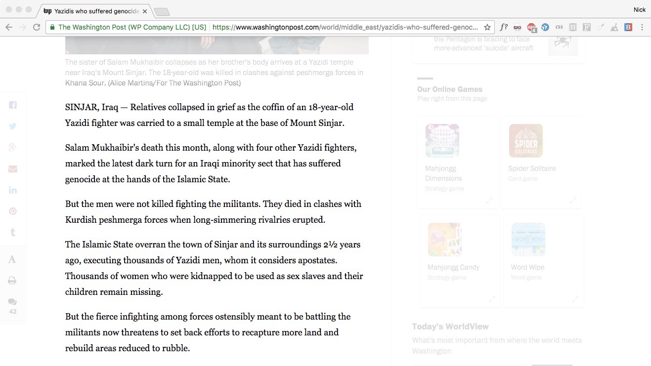 The Information Superhighway is Lined with Billboards — We’re Here to Help Reading on the web is distracting. Not only are you bombarded by email dings, calendar reminders, and Slack notifications, the very website you’re reading is preventing you from focusing. How? By surrounding the one thing you care about — the body text on the page — with a rotating cast of colorful icons, calling out to you: SHARE THIS ARTICLE ON FACEBOOK, LINKEDIN, AND GOOGLE PLUS! Got a minute? PLAY SPIDER SOLITAIRE OR MAHJONGG ! And don’t forget to SUBSCRIBE TO OUR NEWS ALERT EMAIL LIST! Focus Mode: Blinders for the Internet We’re helping people focus while reading by literally dimming these online distractions. Here’s how it works: Focus Mode dims the distractions that surround the article You can customize the level of dimming from 1% to 100% Whenever you move the mouse, the dimming disappears — so you can click on links or navigate the site ( ) this is also why it’s better than using the “reader mode” offered in some browsers, which has to be deactivated before you can resume navigation You can deactivate Focus Mode for any websites that don’t work well with it BeeLine Reader + Focus Mode: flipping the script to make websites more readable Focus Mode is the latest addition to the BeeLine Reader which people around the world use millions of times a week. The main function of BeeLine Reader is to enhance reading ease, speed, and focus by applying a line-wrapping color gradient to text (see demo below, if this is the first time you’ve heard of BeeLine). Chrome extension, With the addition of Focus Mode, we’re taking things one step further to improve website readability. Instead of making you focus on boring black text — which is the least visually interesting thing on the page — we format the web in a reader-centric way. We dim the distractions and apply our focus-enhancing color gradient to the body text, which makes it supremely easy to focus while reading. in part because reading on paper is less distracting. But the internet has so much useful information that we obviously can’t do without it. At BeeLine Reader, we’re working to make digital reading less distracting and more efficient. Millions of people still prefer reading books on paper instead of on screens, Ready to check out distraction-dimming Focus Mode? Grab the BeeLine Reader and see how much it helps you focus online! Chrome extension To learn more about BeeLine Reader, a company that has won social impact awards from Stanford University and the Tech Museum of Innovation, see . Questions? Email contact@BeeLineReader.com BeeLineReader.com