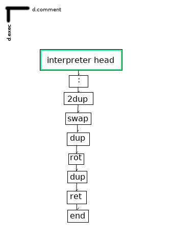 For the sake of readability for non-Forth-programmers, a few Forth keywords have been renamed: ‘:’ becomes ‘def’ and ‘;;’ becomes ‘end’.[4] Function definition, nevertheless, works approximately the same way: