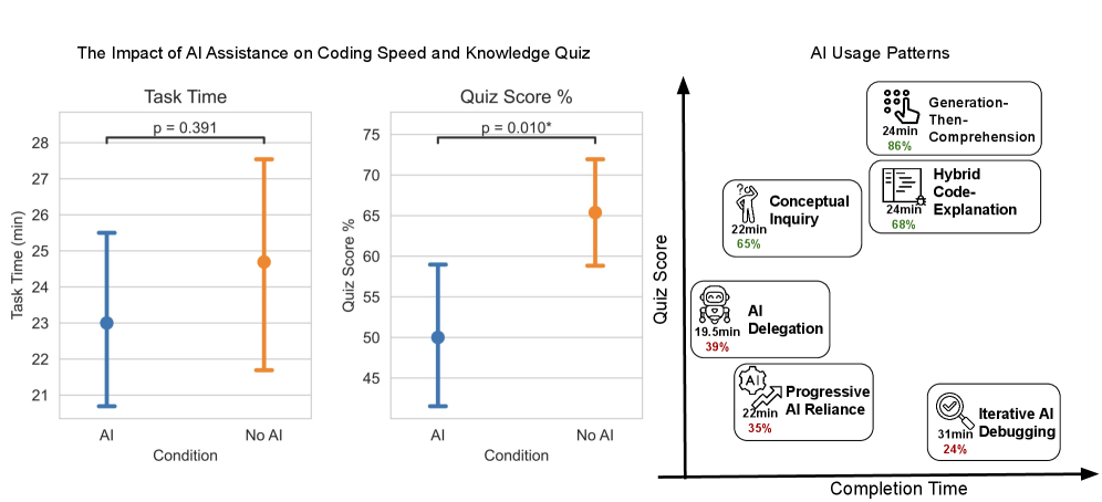 Figure 1 shows the main result with decreased library-specific skills among AI users across conceptual understanding, code reading, and debugging