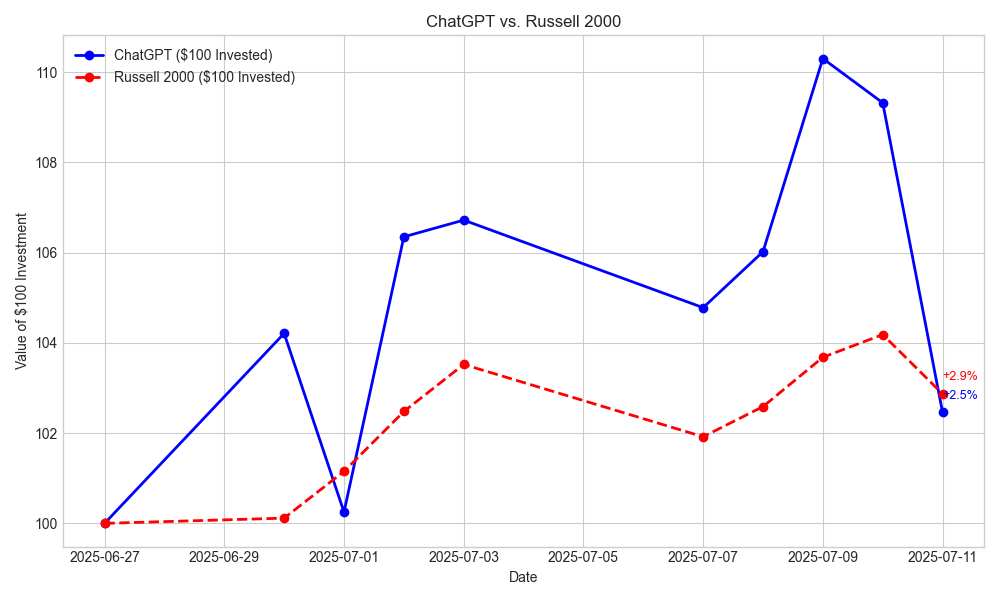 Honestly, I thought it would completely breakdown after Friday, but it still feels confident in it’s thesis; not many traders can lose ~7% of their account in a day and make zero changes. I was a little worried it would fall into a cycle of picking companies and giving up after like a week, but that hasn’t happened (at least yet). I’m excited to see if there will be any lasting effects on ChatGPT’s mentality after such a big drawdown. Thanks for checking out this week’s update and see you next time!