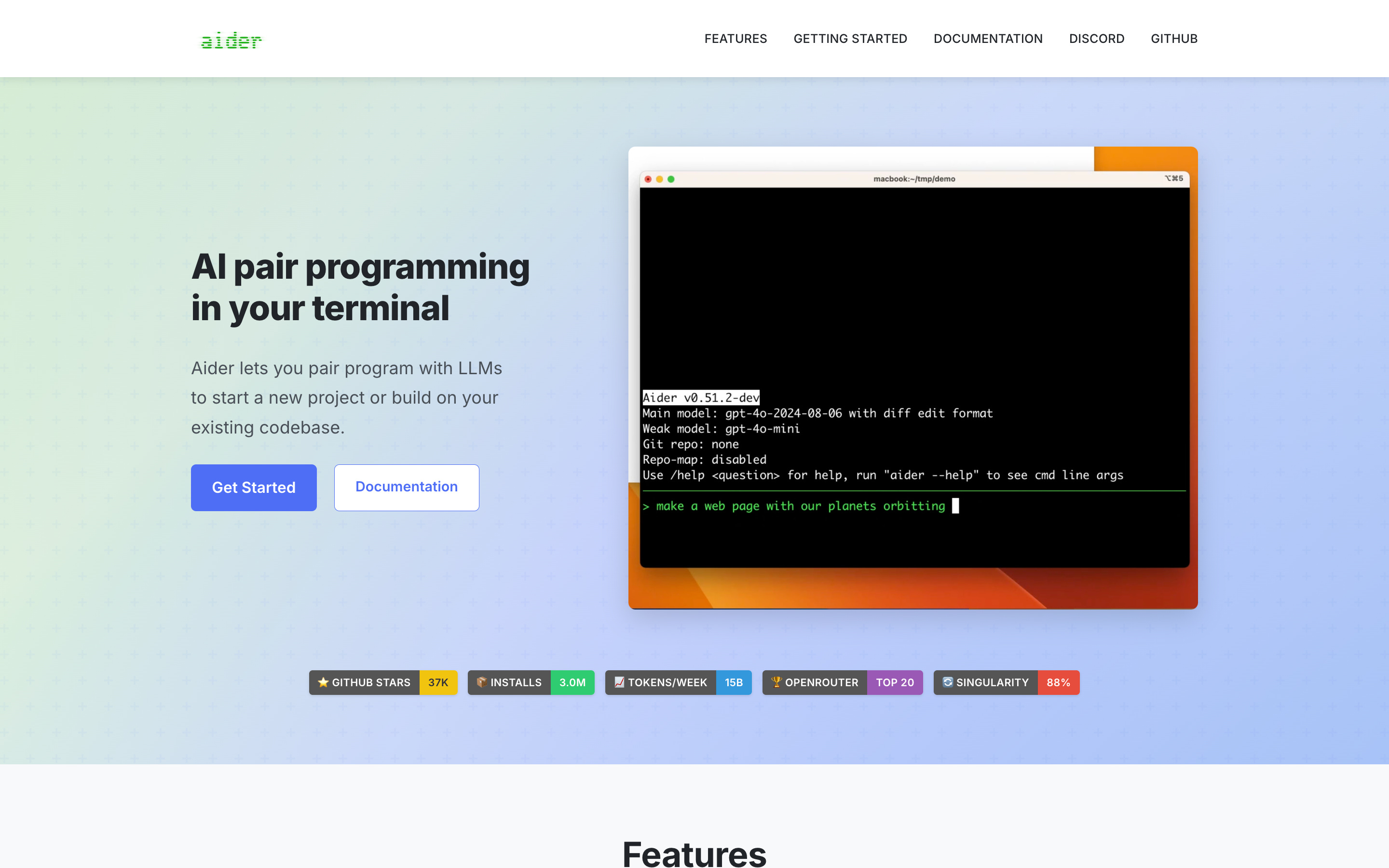 Aider is one of the first AI coding agents built for the terminal, designed to let you pair program with LLMs on new or existing projects. It supports both cloud-based and local models, maps your entire codebase, and works with over 100 programming languages. With built-in Git integration, Aider can automatically commit changes with meaningful messages.