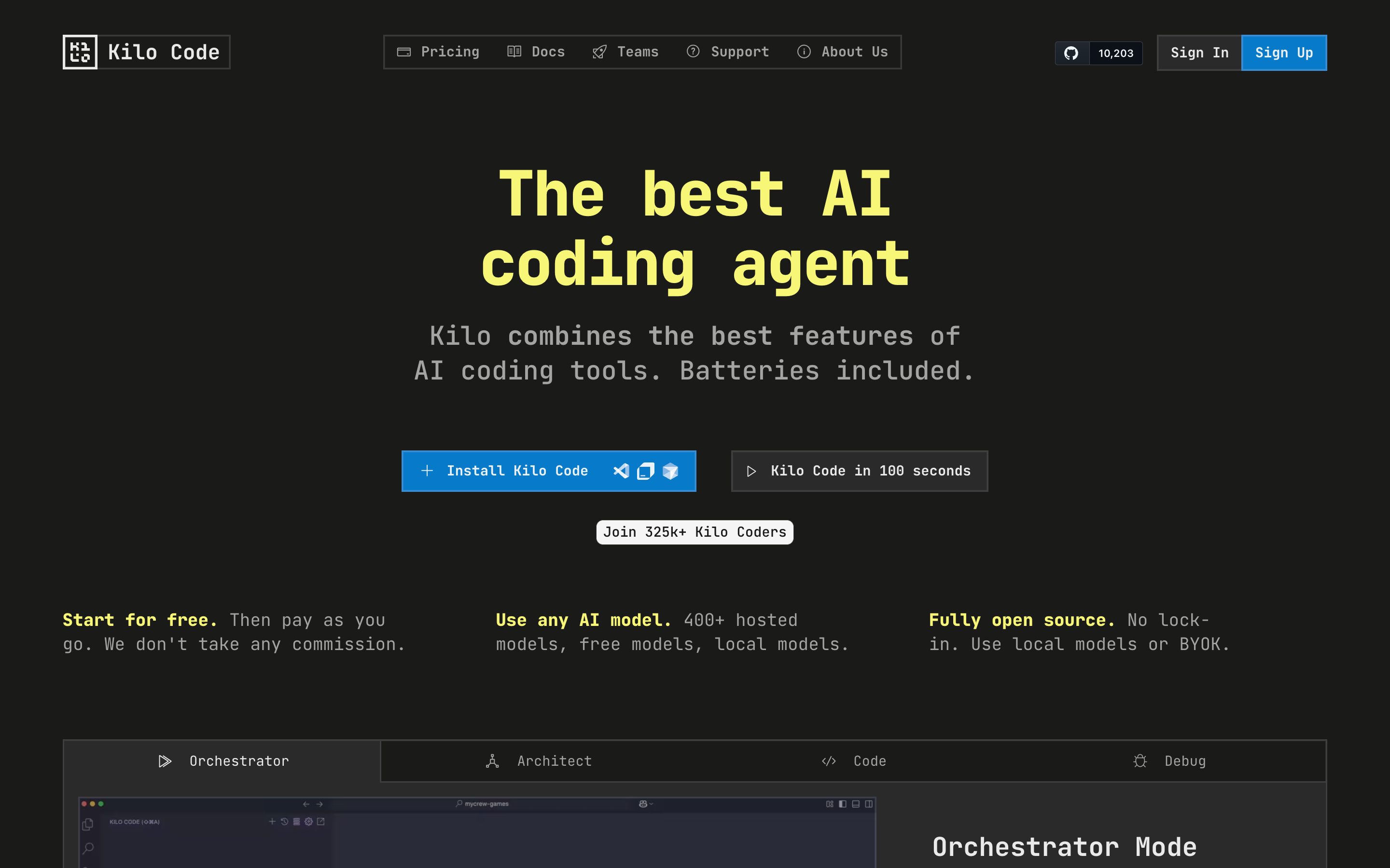 Kilo Code is an all-in-one, open-source VS Code extension designed to accelerate development through AI-driven task automation. Forked from Roo Code (originally based on Cline), it brings together the best of both projects into a single powerful tool.