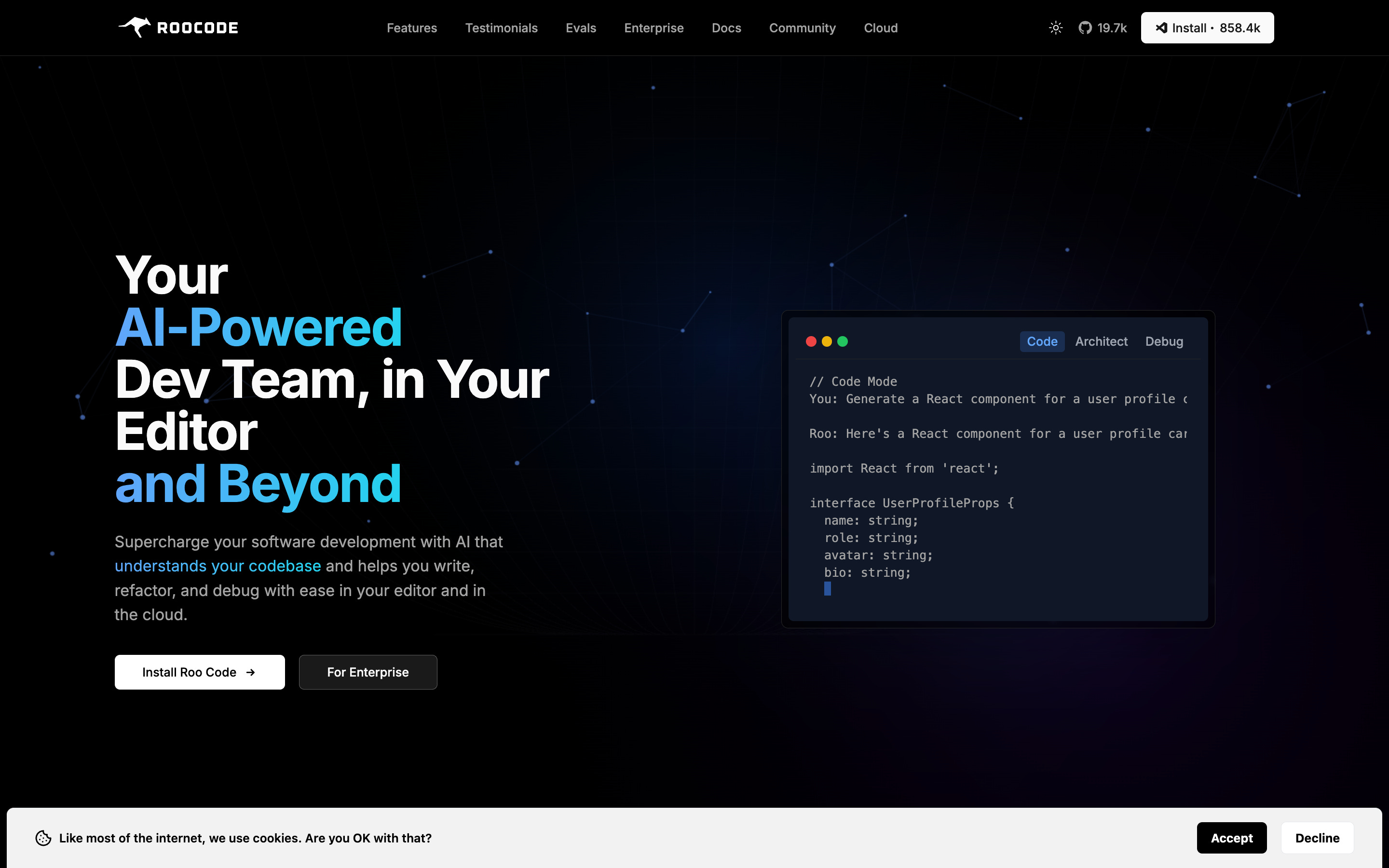 Roo Code is an open-source AI coding agent that works inside Visual Studio Code (VS Code) as an autonomous co-developer. It understands natural language instructions, can read and modify project files, run terminal commands, and even automate browser actions for testing and debugging.