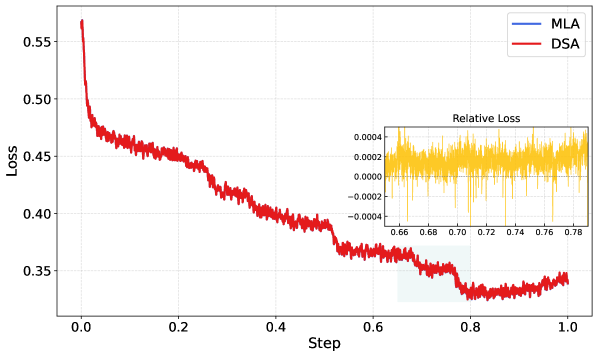 DSA introduces routing logic that learns which tokens deserve full attention and which can be processed more efficiently. The result is lower computational cost while maintaining fidelity on long-context tasks. This isn't a theoretical advantage; it's measurable in training curves.
