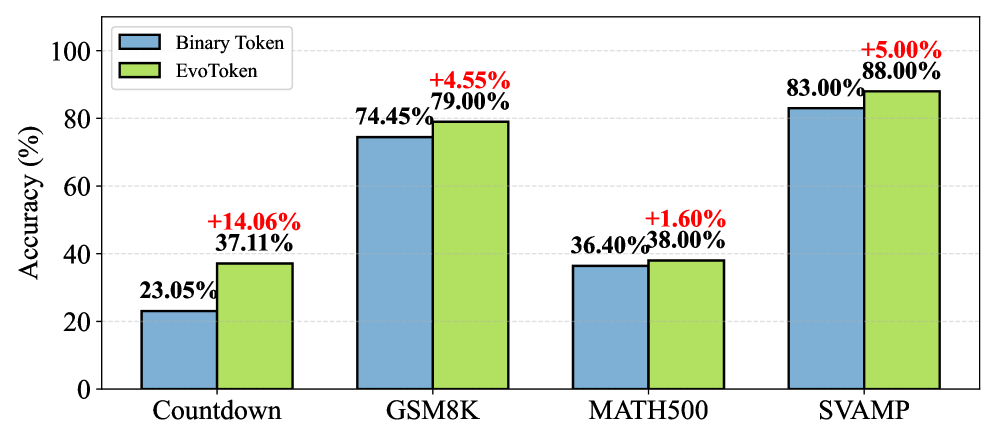 This revisability matters in practice. Mathematical reasoning or multi-step problems benefit when the model can change its mind about earlier tokens based on later context. Language understanding tasks benefit when the model captures semantic uncertainty at intermediate steps. The method is general enough to help across different types of tasks.