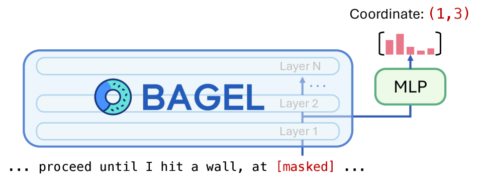 To find out, the research probes the model's internal representations while it reasons. The approach is elegant: train diagnostic classifiers (simple neural networks) to read spatial information from the model's internal states during reasoning. Specifically, can these probes predict the positions of masked points in a scene based on what the model's internal representations contain while it's solving a spatial problem?