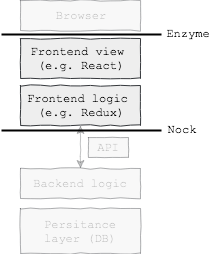 tldr; You can test your Redux app by rendering it in node, simulating user interactions and verifying changes in state and markup. These tests are relatively easy to write, fast to run and give a lot of confidence. Writing efficient software tests is a tricky balancing act. By efficiency, I don’t mean execution speed or resource consumption, but rather nailing the trade-off between the effort put into writing tests and the value they provide. This is not a new or unknown problem. A lot of smart people pondered on it in the past, and established guidelines that can help developers tackle it. I’m a big believer in the that dictates the relative number of different types of tests in a healthy test suite, with unit tests being the strong base, covering every piece of code individually. testing pyramid Unit tests and Redux The structure encouraged by Redux makes writing unit tests a breeze. You can require different blocks of the application (think reducers, action creators, containers, etc.) in isolation, and test them like any other pure function — test data in, asserting on the data out, no mocking required. lists unit testing approach for each of these blocks. The testing guide in Redux documentation Following this guide you can get to a complete unit test coverage by tediously copy-pasting tests from reducer to reducer, from action creator to action creator... But once all that work is done, the testing pyramid strikes back. Since it’s only unit tests, the test suite still doesn’t answer the fundamental question — does the app actually work? Climbing the pyramid There are several ways to interpret the upper layers of the testing pyramid in the context of a webapp. The top, end-to-end (e2e) layer can be implemented using Selenium, for example with . These tests are agnostic, so they will still be valid even if you port your app to use a different framework. However, they take long to implement and run, are hard to debug, and can often be flaky. Usually a project can and should only afford a relatively small number of them. webdriver.io technology What about the layer between unit and e2e tests? In general, these are called integration tests, as they verify how different modules in the application work together. The spectrum of integration tests is wide. For example, one could argue that if a test for reducers uses action creators to dispatch actions, it’s already more than a unit test. On the other end of that spectrum, e2e test can be seen as the most extreme case of an integration test. It seems that one could try to find the sweet-spot for integration tests in Redux. Ideally, they should be fast enough to run as a part of the development flow, they should use the same testing infrastructure as the unit tests and they should give a decent level of confidence that the entire part of the webapp managed by Redux works as expected. Finding the boundaries Finding out where to place the boundaries of the tests is a good starting point. The structure of most webapps can be represented like so: Some parts of the system need to be mocked, in order to achieve the desired characteristics of the tests. From the top, the most limiting factor is the browser. Starting an instance of (even a headless) browser to run the tests will take much longer than running some code in node. From the bottom, we don’t want to wait for real requests to complete. The layer is also a clearly defined interface that is reasonably easy to mock. network Mocking the boundaries Assuming the app uses React and Redux, it’s quite easy to write it in a way that allows it to smoothly run in node during testing (or even in production if you’re rendering server-side). This means it’s possible to use the great testing framework to run the tests as well as to render parts, or the entirety of your application and interact with it without the need of an actual browser environment. Jest enzyme Enzyme provides a function which can be used to render and interact with any React component, for instance, a complete Redux app. To reduce the boilerplate for each test, it’s useful to write a simple utility function that renders the app with given state and returns the enzyme’s wrapper object, as well as the Redux store object (which will come handy in assertions). mount Utility for rendering Redux application with arbitrary state, and an example of usage Running the tests in node also enables some clean mocking solutions for the network layer, e.g. the library. Nock makes it easy to declare response data and codes as well as errors for network requests before running specific tests. Mocking a successful GET request can look like this: nock Example of mocking a network request with nock With this setup, it should be possible to run the integration tests with the convenience and speed not that much worse than the unit tests. All that’s left is implementation… Mocked boundaries for Redux integration tests What to test? The kind of integration tests that will give the most confidence in the correct functioning of the app are those that take the perspective of the user. The goal is to verify that once the user interacts with the application by clicking buttons, filling form elements etc., the app responds by modifying itself or performing side effects as expected. Let’s consider a simple scenario of submitting a form. We render the app with the data already filled in, and simulate the user clicking the submit button. We also make sure that the request to the API endpoint that our app is wired to call will succeed. Boilerplate for the integration test with Jest When to test? Before diving into implementation of the assertions, there is one more problem to address: when to run them. In a simple case, when all the changes in the app happen synchronously, you can run the assertions straight after simulating the user action. However, your app will most likely use Promises to handle async part of the code, e.g. the network 