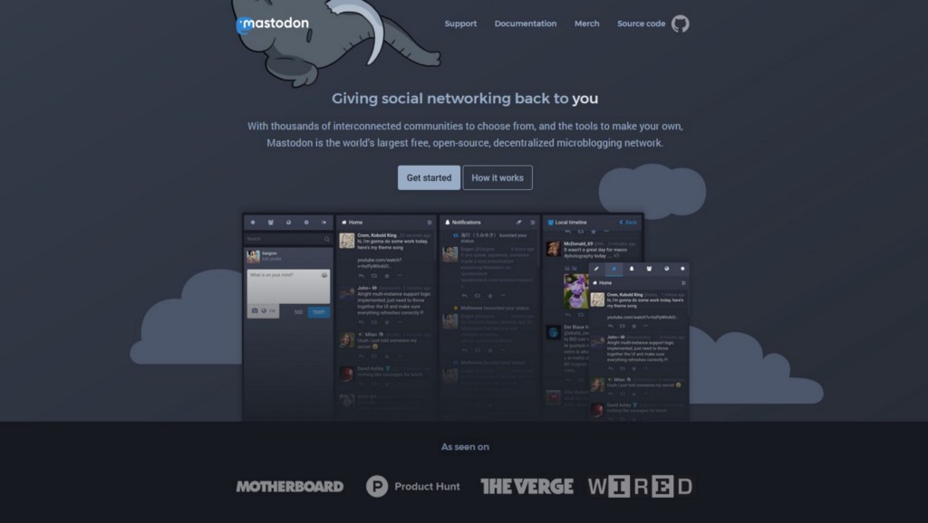 Along with the logo, we now have a beautiful homepage for the project itself. The kind of link you can send to someone to show them what Mastodon is without committing to any particular instance — joinmastodon.org