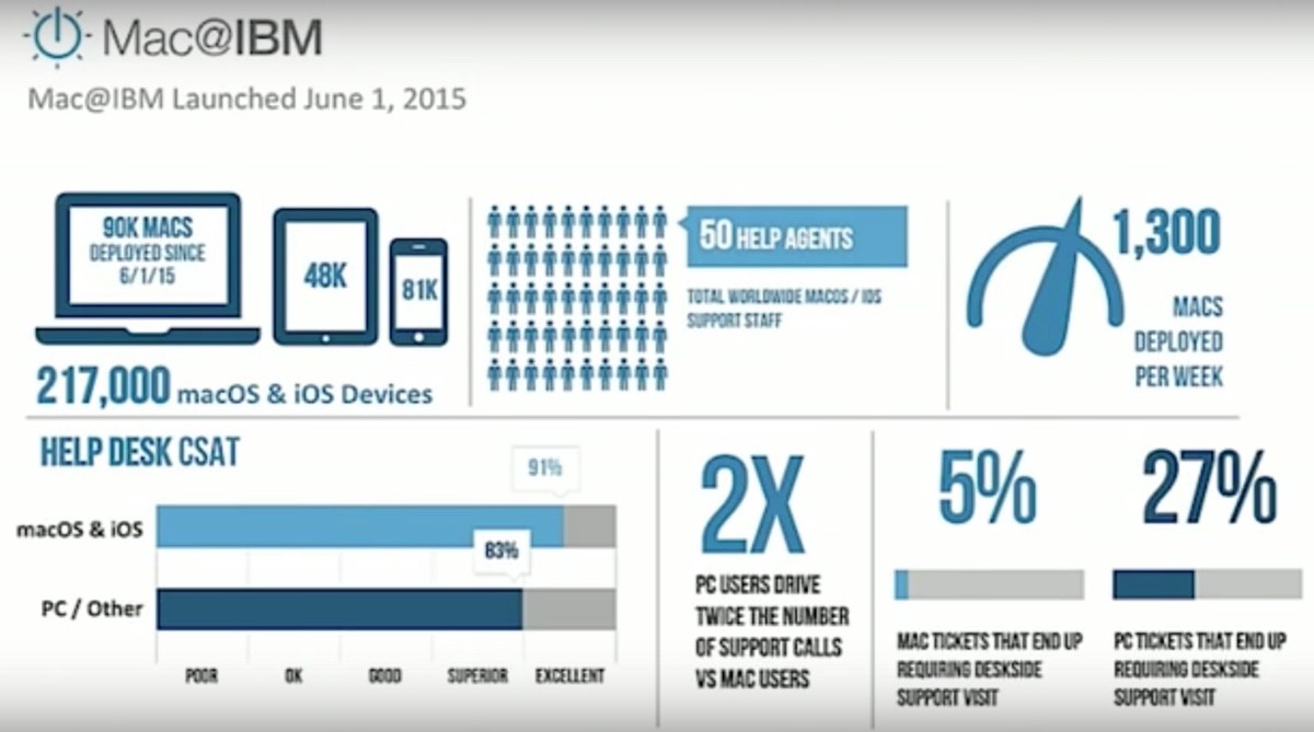 On an individual basis, the merits of a Mac or a PC appear to be subjective and relative to necessity. Some prefer Macs because of their dedication to simplicity, security, and their free suite of software. Some prefer the low entry fee, hardware freedom, and the status quo inherent to PCs running on some flavor of Windows. Further and even though they have access to the same productivity software and platform agnostic cloud solutions, others seem to think that Apple products are reserved for creative types while PCs are for business folk. All are welcome to their opinion in this regard as either solution can still empower us in a manner that makes telepathy seem futile, but is there a way that we can tell which architecture is the definitive best? Yes and no. While the individual merits of Macs and PCs are subjective, the virtues of a Windows PC such as the Microsoft Surface Laptop or a MacBook Pros are anything but when measured at scale by what matters to businesses; money. Although this is not to be mistaken as a proper definition of the word “better”, the solution which necessitates the least amount of overhead while enabling employees to generate as much revenue as possible tends to be viewed as the better solution in a capitalistic society and we can use this understanding as our yard stick to measure the merits of these solutions in turn. For instance, pretend that you have a business digging holes and have the option of buying a bargain shovel for $15 or you can buy a quality one for $100 for your employees to use. While the bargain shovel is less expensive up-front, it is also built to a lesser standard than the quality shovel which means that it tends to dull and break much more frequently as a consequence. As such and after roughly 100 holes, the $15 shovel needs to be replaced ($.15/hole) while the $100 shovel will eventually break after 1500 ($.067/hole) which cuts their overhead per hole by more than half over time. Further, each worker equipped with a quality shovel can also dig 15 holes/hr while workers with bargain shovels can only manage 10 holes/hr, enabling workers with quality shovels to dig 50% more holes in the same time. It almost goes without saying, but the better solution of the two is undoubtedly the quality shovel. Not only would your long-term overhead be half of what it would be with the bargain shovels, but your employees would also be 50% more productive overall with quality shovels. Obviously, not everyone has the means, the data, or the time to realize the merits of tools in this manner though. In order to make such decisions, you need a large sample base for both types of tools in order to see such trends for what they are and the same can be said of Microsoft Surfaces and MacBook Pros when comparing the two. | https://www.apple.com/newsroom/2018/07/apple-reports-third-quarter-results/ https://www.microsoft.com/en-us/Investor/earnings/FY-2018-Q3/press-release-webcast With the above in mind and if you actually had two companies in similar markets with a lot of employees, with Company A operating entirely within the Apple ecosystem and Company M operating entirely within the Microsoft ecosystem, then the better of the two solutions would be evident and measurable as far as finances are concerned; no differently than it is with our mythical hole digging business. Ironically though, Microsoft and Apple can be used as an example as they are outfitted almost exclusively with their own architecture while maintaining a similar amount of employees with similar backgrounds. Although we do not know their overhead cost on employee tooling per se, we do know their annual revenue along with their overhead and how many employees they each have respectively and can put a decent picture together. As shown above from their quarterly financial report from FY18Q3 and despite consisting of a similar amount of employees with similar backgrounds, your average Apple employee earns 2x more than your average Microsoft employee in the same work week while Apple as a whole generates twice the revenue that Microsoft does. Relative to revenue, Apple also spends 1/3 of what Microsoft spends on sales, marketing, and admin expenses while spending 1/2 of what Microsoft spends on research and development. Further and provided revenue per hour remained constant and although they already have roughly 8,000 more employees than Apple, Microsoft would have to double their workforce from 131,000 to 232,000 employees or work their current employee base twice as hard in order to generate the same amount of revenue as Apple. This isn’t negligable. Although the stark contrast between Apple and Microsoft finances cannot be solely accredited to the quality of the tools which their employees are leveraging en masse, it would be foolish to imply that the overall quality of their products and the revenue they generate is indifferent to the quality of the tools used to make said products. Certainly, leadership, operational models, and industrial idiosyncrasies vary, but the tools people are leveraging en masse are deeply ingrained and matter just as much, especially to engineers, and their adoption can absolutely be the difference between an $800 billion dollar company and a trillion dollar company to say the least. In fact, these tools become so ingrained and essential that the productivity loss stemming from the downtime associated with them is the largest IT related expense to businesses dependent on them, even overshadowing the staff necessary to maintain IT as well as the initial cost of hardware and software. IBM Presentation @ JNUC 2016 https://www.youtube.com/watch?v=NLgvIarqdDM While we’re on the irony train though, it’s worth noting that IBM also noticed the ownership costs were reduced to 1/3 that of PCs on the Windows ecosystem by switching users to macOS ecosystem. While slightly more expensive upfront than an equivalent PC, products within the Apple necessitated significantly l