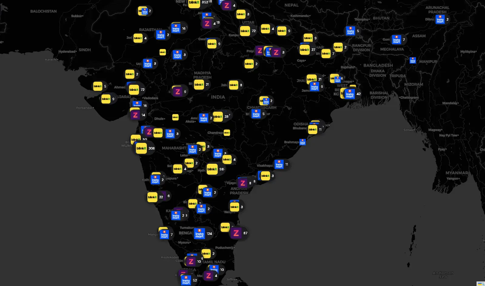 If you order groceries in India and they arrive in 10 minutes, there’s a dark store within 2–3 kilometres of your house. These are small, windowless warehouses — no walk-in customers, no signage, just pickers and riders. Blinkit, Zepto, and Swiggy Instamart collectively operate thousands of them across the country. I wanted the coordinates of every single one. Why? Partly curiosity about the infrastructure density of India’s Q-Commerce boom, partly a practical engineering challenge I wanted to document. This post is a breakdown of the full scraping stack — the APIs I reverse-engineered, the defenses I had to work around, and the physical hacks I used when software alone wasn’t enough. If you’re into scraping, reverse engineering, or mobile API analysis, this is for you. There’s No Store Directory These platforms don’t expose a public store list. There’s no /api/stores endpoint returning a clean JSON array. Their serviceability APIs are designed around a single question: "Is this GPS coordinate serviceable right now?" /api/stores "Is this GPS coordinate serviceable right now?" Send a lat/lng, get back whether a store covers you — and if so, which one. That serviceability check is the primitive everything else was built on top of. The Foundation: Blanket the Country, Filter the Noise Before writing a single worker, I had to solve a geographic scope problem. India is large. A 1.5–2km coordinate grid over India’s GeoJSON boundary produces roughly 1.4 — 3.3 million points (varies based on grid step) per platform. Most of them sit over mountains, forests, desert, or ocean — places with zero dark stores. 1.4 — 3.3 million points (varies based on grid step) The fix was a population density pre-filter using WorldPop — a freely available raster dataset encoding per-km² population estimates. I loaded India’s WorldPop raster (ind_pd_2020_1km.tif) and dropped any grid coordinate below a population threshold before the scraper ever started. population density pre-filter WorldPop WorldPop ind_pd_2020_1km.tif This single vectorized filter — a boolean mask over a NumPy array — collapsed 1.4 million potential API calls per platform down to a few hundred thousand, concentrated entirely in urban and peri-urban clusters where dark stores actually operate. How Each Platform Defended Itself The three platforms had meaningfully different defence profiles, which shaped the approach for each one. Blinkit was the hardest. HTTP 429 rate limits were frequent, and standard Python HTTP clients were immediately flagged by TLS/JA3 fingerprinting — Cloudflare detecting a non-browser TLS handshake before requests even reached the application layer. The fix was curl_cffi, which impersonates Chrome 110’s TLS footprint at the socket level (impersonate=”chrome110"). One useful discovery mid-project: Indian datacenter IPs worked fine against Blinkit. I moved to a Bright Data datacenter proxy pool for the bulk of the country sweep, which was far faster than mobile IP rotation. Blinkit Swiggy Instamart was more unpredictable. Beyond standard 400s range, Swiggy would silently circuit-break — returning 200 OK with either a completely empty body or placeholder-looking data that wasn’t real. Swiggy Instamart Concurrency had to stay low (10–20 workers) to stay under the WAF threshold. I switched to datacenter proxies with higher concurrency here as well once the data quality looked solid. Zepto was the most forgiving by far. A single IP could sustain tens of thousands of requests before triggering a rate limit. The discovery phase ran fast. Zepto One thing consistent across all three: the vast majority of scraping used unauthenticated API calls — the same endpoints the app uses before a user logs in. Authenticated requests only became necessary for Zepto’s deep data extraction phase. Platform 1: Blinkit — Converging 50 Metres Blinkit’s layout feed endpoint takes GPS coordinates and app identity as custom HTTP headers, and returns the full localized app homepage as a JSON widget tree. POST https://api2.grofers.com/v1/layout/feed app_client: consumer_android lat: 28.6139 lon: 77.2090 auth_key: 45bff2b1437ff764d5e5b9b292f9771428e18fc4XXXXXXXXXXXXXXXXX battery-level: EXCELLENT POST https://api2.grofers.com/v1/layout/feed app_client: consumer_android lat: 28.6139 lon: 77.2090 auth_key: 45bff2b1437ff764d5e5b9b292f9771428e18fc4XXXXXXXXXXXXXXXXX battery-level: EXCELLENT Buried inside the response: merchant_info.id (the store ID) and promise_time_state.DistanceInMeter — the exact road distance in metres from the spoofed coordinate to the nearest dark store. merchant_info.id promise_time_state.DistanceInMeter That distance field became the engine of the convergence algorithm. The Auto-Convergence Engine A 1.5km grid sweep confirms a store exists and gives a rough location. Getting to 50-metre accuracy required a second phase.For every discovered store, I took the last known shortest distance returned by the API and generated an 11×11 micro-grid — 121 new coordinate points arranged within that radius. I re-submitted this micro-grid, took the new shortest distance, and generated another, tighter micro-grid. Each generation shrinks the search area. After a few iterations, the reported distance converges on near-zero, pinpointing the store’s physical location. One complication: Blinkit stores occasionally go offline due to surge demand, returning messages like “Due to excess demand, please come back at 6:00 am.” Instead of dropping these, I kept them in a retry queue and waited them out before running the convergence pass. One complication “Due to excess demand, please come back at 6:00 am.” Platform 2: Zepto — The Store That Hands You Its Own Boundary Zepto was interesting for a different reason. The discovery phase was easy. The real surprise was what Zepto returned once I hit the right authenticated endpoint. Phase 1: Discovery The unauthenticated serviceability endpo