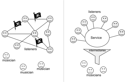 (v0.9 has been released here ) . This article describes Musicoin, a decentralized system for the publication and consumption of music, which combines a cutting-edge cryptocurrency to a peer-to-peer file sharing network. Musicoin allows musicians to license their content as a “coded contract” directly to a decentralized database called a “blockchain”. These contracts automate the collection and distribution of royalty payments and remain in the control of the artists themselves. Listeners can access a global catalog of music stored on a peer-to-peer network and pay artists directly using digital currency, based on their usages. Ease-of-use tools can be designed to allow a seamless experience for both listeners and musicians, and an open protocol will allow third-parties to build a rich ecosystem of value-added software and services. By providing a distributed and highly transparent platform that connects musicians and listeners directly, Musicoin lays the groundwork for a new age of music that is sustainable, borderless, and fair to all stakeholders. Abstract The digitization of the music industry began in the 1980s and, in hindsight, was inevitable. By the late 1990s, with the rise of Napster, digitization officially became a disruptive force, and one that music industry is still grappling with today. At the heart of the struggle is a system of licensing, distribution, and promotion that dates back more than a century. As technology outpaces (and in some cases simply circumvents) the traditional system, there is growing concern and consensus that the century-old music industry might collapse under its own weight after nearly two decades of decline. And, while the transition to digital music has largely been a boon to listeners, who now enjoy access to an ever-expanding catalog of music through services like Spotify and iTunes, it has been difficult at best for musicians. The industry still keeps the large majority of revenue and is painfully slow to cut a check to musicians, making it increasingly hard for musicians to earn a living. However, the same technological advancement that has wreaked havoc on the music industry for the past 20 years also presents us with an extraordinary opportunity to redefine the relationship between musicians and listeners. Digital currency (or “cryptocurrency”), in particular, will allow nearly instantaneous payments with minimal transaction cost. “Coded contracts” will allow musicians to maintain control of licenses, rather than relying on a third party. The remainder of this paper gives a brief overview of two relatively recent and dramatic changes to the way people interact with music, both of which have ultimately failed to produces a sustainable and fair system. Finally, a detailed proposal for a path forward is given. Two Failed Models Napster, which was the first peer-to-peer (P2P) file sharing network widely adopted, marked the beginning of the end for the traditional approach to music distribution and consumption. In many people’s eyes, it’s seen as the assassin of the music industry. In this model (which we call the “Torrent Model”), content was casually shared on a P2P network and downloaded by other users without the musician’s permission and without sending any form of compensation. This model is doomed by itself, not only for its legal breach, but also because it is not sustainable as musicians’ benefits were totally annihilated. More recently, a “Subscription Model” has become popular (see Figure 1). In this model, services deliver streaming content based on a centralized catalog and charge users a level of subscription fee (mostly 9.99USD/month), which is often overpriced. In turn, these streaming services (like Spotify) pay labels and publishers a big portion of revenue to acquire licenses. This model is an improvement over the Torrent Model, since revenue is actually collected from listeners, nevertheless, the portion of that revenue makes to musicians is extremely small, because there are so many intermediaries taking a major cut. Ultimately, over of royalty fees were kept by intermediaries. The reason for this is largely historical. Prior to the digital age, musicians needed these intermediaries to help them organize, plan, record, produce, and distribute their music. This spawned the creation of many agencies in the music industry, such as music labels, PROs, distributors, retailers, studios, PR agencies, and marketing agencies. After the Digital Millennium Copyright Act (DMCA), more agencies were created, and all of which took their share of revenue. If we look at the income distribution structure, we would be really surprised how little we pay musicians. 80% Figure 2. The current industry myth on distribution One famous case is the complaint by singer James Blunt, “ ”. For 1 million playbacks on Spotify, James Blunt only receives £450! It’s actually not the worst case, many artists can’t even bargain such a rate and are paid far less. For this reason, many musicians still can’t make a living, which forces them to be part time or just change careers. Given the ubiquitous technologies and social media today, it’s worth asking: Most musicians today are very busy marketing themselves, creating and recording music themselves, and sharing content online directly. I get paid £0.0004499368 per stream Do all of these organizations still add value? New Paradigm We need a new model that re-structures the entire process, from creation, to consumption, to compensation. The model we propose here is based on the theory of Sharism, which emphasizes a tight coupling between sharing and rewarding. Figure 3. Sharism Model creates a closed circuit between musician and listener. In Sharism Model, each playback represents an exchange between the musician and the listener. The listener sends a payment to the musician, and in exchange is granted access to a specific work. This model requires a payment mechanism t