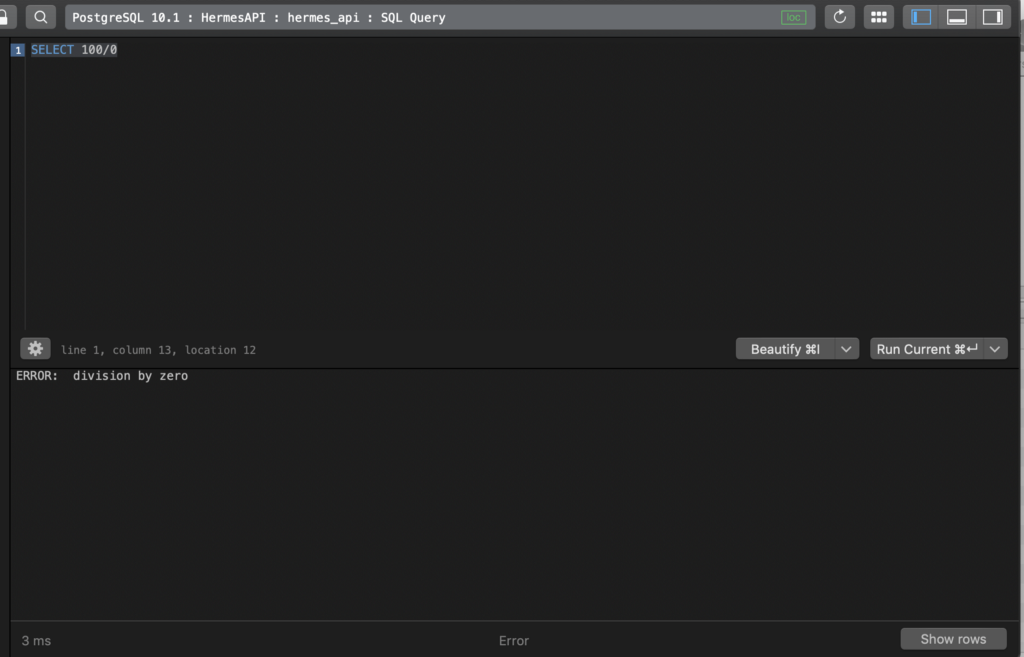 Postgresql returns proper error message when erorr happens.Please see the image in below.