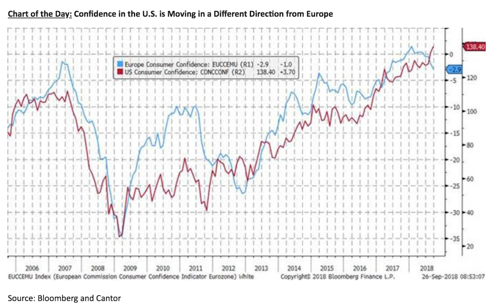 What happened this week in the Crypto markets? Don’t Believe the “Lower Volatility” Hype The overall crypto market ended the week flat to slightly lower, and for the month, the various crypto indices closed +/- 5%. But as , it hasn’t been a smooth journey, and this week was no exception. Closing the books on September, we noticed that each of the 4 calendar weeks last month saw peak-to-trough price moves of over 10%, and in some cases, the intra-week ranges surpassed 20%. This past week alone, after a muted start to the week, the crypto market declined rapidly on Tuesday, only to see prices rally back throughout the rest of week, ending the week largely unchanged. we mentioned last week Meanwhile, the public narrative is shifting towards a “ ” by studying technical charts that indicate BTC and other cryptoassets are trading in more narrow price channels. We’ll leave the chart reading for those who are trading every minute of every day, but when we look at these intra-week moves, it suggests something else may be afoot. lack of volatility So Let’s Start at the Top — Macro View and Consumer Confidence Viewing the world through a myopic lens is never advisable. While our in-house research team focuses exclusively on crypto markets, our macro viewpoints are shaped by what is occurring in traditional markets. And while many crypto enthusiasts continue to speak out about crypto’s lack of correlation with traditional markets, there are some recent patterns worth exploring further. We highlighted over the summer that , citing a strong correlation between Asian equities and prices. This relationship, while not perfect, continues to hold- and can even be tested with the naked eye simply by watching crypto price direction in early US market hours following a particular strong / weak Asian overnight session. Bitcoin may no longer be an uncorrelated asset Bitcoin Furthermore, many believe that Bitcoin will ultimately become “digital gold”. This in turn will make Bitcoin negatively correlated to risk assets. This thinking suggests that other risk assets will be a leading indicator of Bitcoin. However, over the past month, BTC has actually been a LEADING indicator, as measured by the VIX. There were 3 significant BTC corrections in September, and each one was followed by a spike in the VIX. Graph of BTC Prices vs VIX from Sept 1 — Sept 30, 2018 Source: TradingView And finally, given our propensity for spotting cross-asset relationships, we admit that this next one has us particularly confused. Since crypto prices follow Asian and emerging market equities, we assume that there must be some relationship between crypto and US / Europe. Then what is the takeaway when two of the largest economic powerhouses are at odds with each other? Such is the case with consumer confidence with US and Europe sentiment heading in opposite directions. This area will requires further analysis. Notable Movers and Shakers Historically, correlations have been very high between digital assets, but that may be starting to dissipate. This past week, ⅔ of the Top 25 by market cap moved lower, while ⅓ moved higher week-over-week. Bitcoin cash (BCH), the 2017 fork of Bitcoin, gained 10% week-over-week . The large spike followed news that Bitmain had officially filed for its IPO on the Hong Kong Exchange, potentially alleviating some of the liquidity issues at Bitmain and thus, BCH (with which a sizeable position sits on Bitmain’s balance sheet). following a 27% jump on Thursday 0x (ZRX) only finished the week up 1%, despite a 15% gain on Monday following the . 0x was unable to hold onto these gains following Tuesday’s broad selloff. launch of protocol v 2.0 What We’re Reading this Week Open Savings Initiative Allows Bitcoin Users to Lock Funds Until a Specific Time This is a cool idea. There is a new platform that allows people to save BCH and BTC in a time-locked address making the funds unspendable until a specific time. So essentially a user who wants to give 1,000 BCH to their son on his tenth birthday but wants to lock up the funds until he turns 21 can do so using the OSI platform. AirBNB Wants to Give Its Hosts Equity AirBNB wants to give hosts equity in its business. Hmm… a community needing an incentive structure for important participants to continue to operate & evangelize within the community. This is a novel-concept; where have we heard that before? (HINT: cryptoassets) JP Morgan Launches DLT Payment System, Pushing Ripple Slightly Aside JP Morgan’s reps state that their system is a response to major crypto startups, like Ripple or Stellar, that are now spreading their arms around the global system of banks, offering their products to make overseas payments fast and low-cost using their tokens. Compound Launches Easy Way to Short Cryptocurrencies There will always be a debate as to whether or not short-sellers help or hurt markets, but we’re in the camp that short-selling helps markets achieve equilibrium. The First Tokenized Song Still looking for real life useful applications of ? This song from Taryn Southern marks the world’s first ever experiment in mass music collaboration and backend ownership via smart contracts. blockchain Arca in the Press and on the Streets Arca’s CIO Steven McClurg and Arca’s Head of Research, Katie Talati, teamed up this week to . to discuss custody in crypto McClurg also spoke on a panel discussing at the in Las Vegas. Arca’s bottom up research process Inside Alternatives and Asset Allocation Conference And That’s Our Two Satoshis! Thanks for reading everyone! Questions or comments, just let us know. - The Arca Portfolio Management Team Steven McClurg — Chief Investment Officer Jeff Dorman — Head Trader Katie Talati — Head of Research
