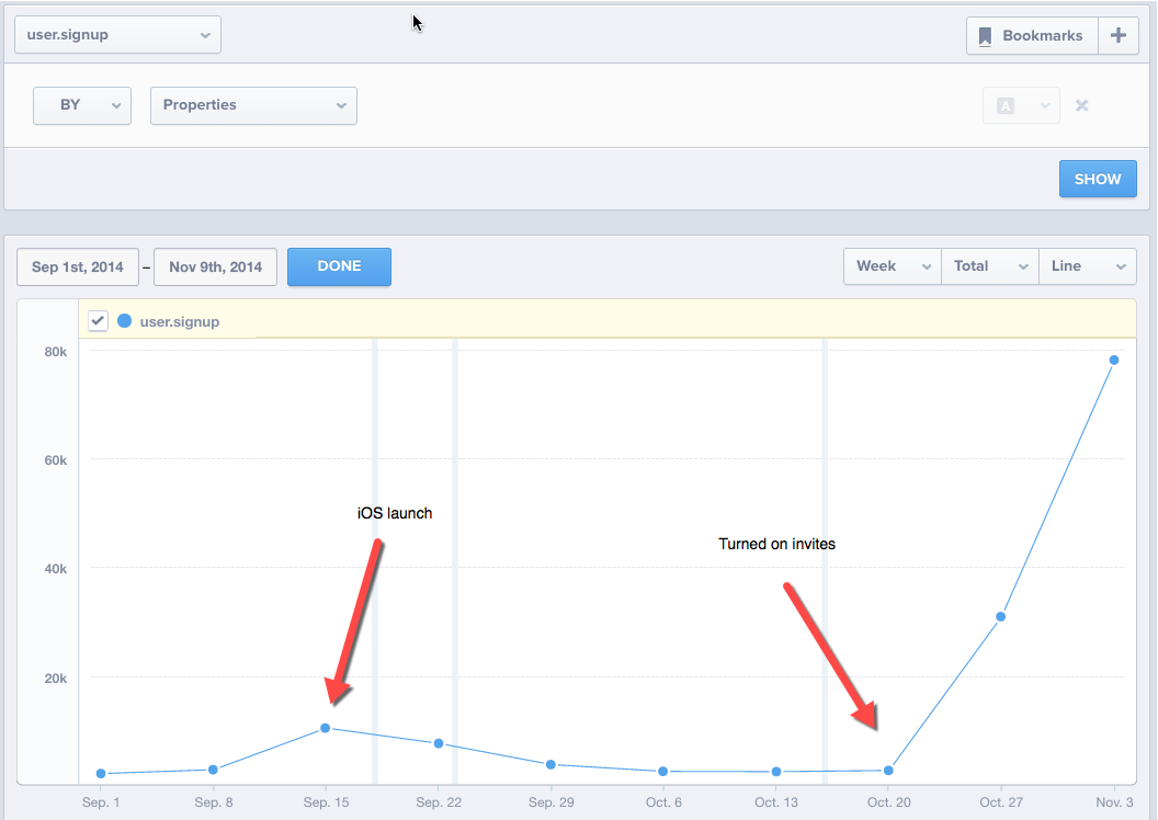 Like any growth tactic, referrals aren’t a panacea, and it can be tempting to prioritize them too early or too aggressively — I’ve done both. Make something people want. Don’t pour water in a leaky bucket. Never spam. All true. But when a well-executed referral program is working, it can be transformative and exhilarating. Like this: