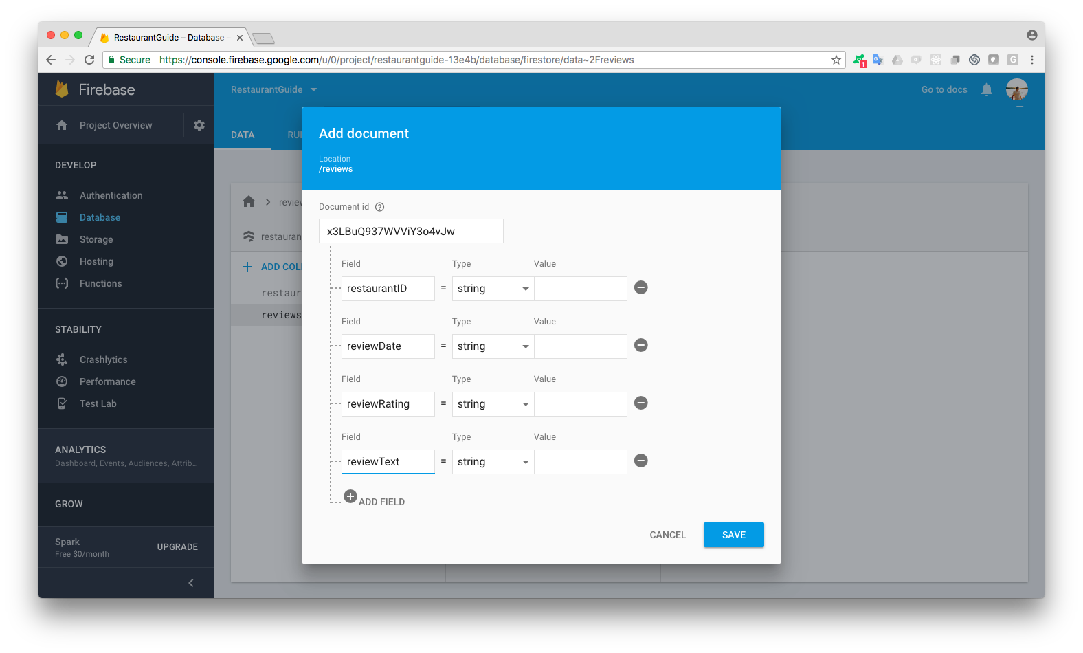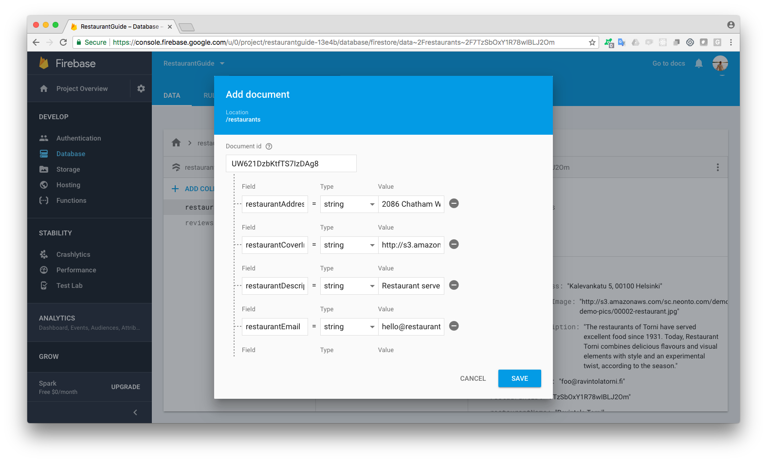 Both React and Firebase are technologies that have been around for a while. 2018 has seen some exciting new developments that bring the two together in a way that’s greater than the sum of the individual parts — as awesome as they already are! This article will show you how to build a realtime, highly scalable web app combining the two. Here’s a live demo of the result, a minimal “local Yelp clone” that lets you write reviews using your Google login: Restaurants Guide You won’t have to write a single line of code to get to that point, yet the React (JavaScript/JSX) code will be there for you to modify and expand. Before diving into the details, let’s recap what we’re talking about: is a JavaScript front-end technology created by Facebook. You could think of React as providing a crucial piece that’s missing from the web because HTML describes documents, not application UIs. React is a simple way to define the structure of a UI and how it’s updated over time as data changes. Originally developed for web apps, the React paradigm was so successful that it has since been applied to numerous other targets: there’s for mobile apps, for virtual reality, and so on. For this discussion, we’re focusing on React for web. React React Native ReactVR is a collection of services by Google for creating the back-end of mobile and web apps. Originally an independent startup, Firebase was acquired by Google and has since been integrated with Google’s global cloud infrastructure. The centerpiece of Firebase is a database, but it also provides all the other services you need for an app: there’s authentication, file storage, and cloud functions for running code on the server. Firebase The original Firebase product was called Realtime Database. After the Google acquisition, Firebase has been creating a next-generation database product, and it’s now available as . (As of April 2018 the service is officially still in beta, but already works very reliably.) Cloud Firestore This article is all about the new hotness of Cloud Firestore, not the “old” Firebase database. This is important because it’s rather easy to get confused about the products even on the Firebase website. The tagline for Cloud Firestore is . It’s fast, it’s realtime, it’s backed by Google’s auto-scaling infrastructure, and it has a nice admin UI that makes it easy to manage your data without having to memorize magic SQL incantations. It’s a true next-generation database for apps. “Store and sync app data at global scale” The only question mark is pricing. Firebase has good free and $25/month tiers, but beyond that, it’s metered: you pay by the amount of reads and writes made by users. What happens if your service gets very popular? Many people would argue that’s a nice problem to have — but regardless of that, the scalability of Google’s platform means that you won’t have to suddenly re-architect your entire back-end if usage explodes. That’s a cost reduction and risk management factor that you should take into account too. (If you’re still worried, read through this article: at the end we have some additional ideas for how to manage the Firebase pricing risk.) React Studio ❤ Cloud Firestore In short, there’s a lot to like about Cloud Firestore. But developing apps for an entirely new database presents a substantial learning curve. If you’re also trying to learn modern React practices at the same time, it can be quite daunting. Enter . Created by Neonto, it’s a free application that bridges the worlds of UI design and development. You can bring in live data, import designs from tools like Sketch using , add responsiveness and interactions, and build complete app flows. One click and you’ll get clean code in a fully functional React app structure (using Facebook’s scaffold). React Studio our transfer plugins Create-React-App That’s what makes React Studio a great learning tool for React programming. You can configure a fully working app, do changes in the GUI, and see how it affects the output code. When you want to go deeper, nothing stops you from jumping into a text editor and going crazy with the exported code. Thanks to integrated Git branch support, React Studio can be used to create and manage the UI even when you’re doing manual work on code in the same source tree. (We’ll have an article about that workflow soon!) Get React Studio You can get React Studio for free at: https://reactstudio.com Currently it’s available only for Mac. (If you need a Windows version, it’s possible as part of a customized enterprise edition — contact . We’re super happy to do customizations, but please note that we can’t do custom development for Windows unless you’re committing to at least 10 seats on a long-term maintenance contract.) sales@neonto.com Get the Firebase plugin React Studio has an advanced plugin system that lets you switch between back-ends as easily as loading another plugin in the GUI. In the latest React Studio 1.5 release, we’ve added a plugin to connect to Firebase Cloud Firestore. You can find it in the Plugin Store — click on the button in the toolbar. Even though the plugin has a nominal price in store credits, you get free credits after installing React Studio, so the Firebase plugin won’t cost you any money. When the plugin is installed from the Store, you’ll be asked whether you’d want to open an example project. Choose that option because we’ll be using the example project through this tutorial. (If you accidentally miss it, don’t worry: the example project was saved in your Documents folder.) Planning our journey: What’s in the Restaurants demo app As mentioned at the start, what we’re going to build is a “local Yelp clone” like this: Restaurants Guide When you downloaded the Firebase plugin from React Studio Plugin Store, you got an example project which is exactly the same as this Restaurants Guide demo. (If you don