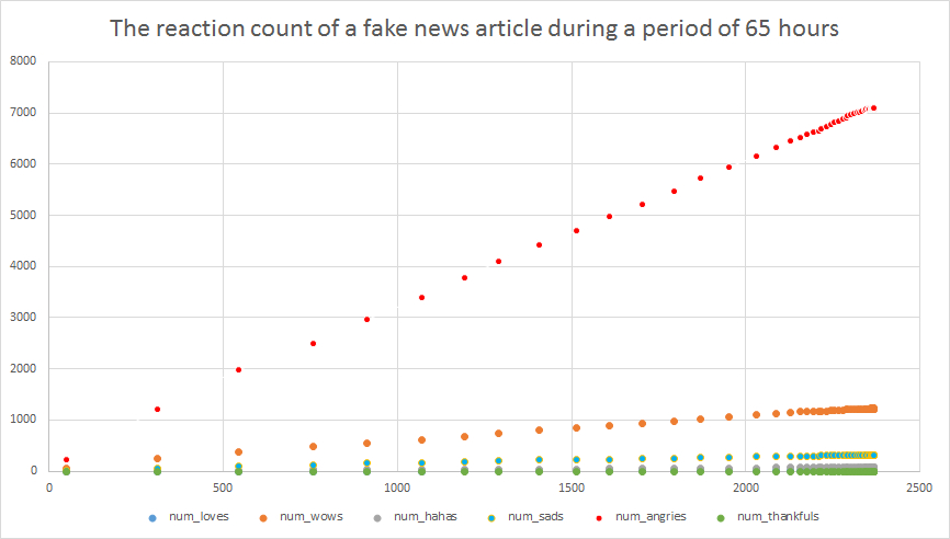 Working non-stop for 2 weeks, i now started tracking over 4000 Facebook posts coming from 30 Facebook pages that usually post fake or misleading news, to see if i can identify fake viral news, before they go viral.