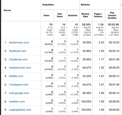 Introduction 12 days after my last article was published on behalf of my first client, referral traffic has increased on their site by 86% and 27.5% of their referral traffic is from my and articles — ranking #1 out of all their referrals, with the highest number pages/session. Medium.com HackerNoon.com Yesterday, 22.5% of the traffic was from my HackerNoon.com articles, ranking #2 in overall referrals but if you look closely the ranking #1 entry has 100% bounce rate and average session duration of 00:00:00 — while the highest average session duration on the list is 00:13:12 and second highest is 00:04:53 their ‘new users’ ratio combined is 16.67% out of 6 users and my HackerNoon traffic is 66.67% net new users. I achieved stickiness for organic traffic that’s bringing people back — 33.33% of these visits were returning users — as well as genuinely interested unique traffic. How did I manage to push such organic growth? This article will serve to summarize my tactics so you can reproduce these kinds of results. A Shill If you’re reading this as a novel tech organization, individual or brand who’s looking to rank you should visit ! http://techvoices.club where I offer my services A Further Shill If you’re reading this as a content creator or influencer, you should also head over to and offer your services! http://techvoices.club where you can sign up as a vendor in our community marketplace Choose Titles Based on Relevant and Popular Keywords Your article titles will be the primary source of search engine ranking for keywords. Check out this stickiness over time in the following image! It’s been 12 days and we still have one keyword in top 3, the other two in top 10 — and the ranking’s best values vs present values work out to net equal, proving we’ve achieved stickiness! What’s this in the next image? More proof from a separate article? While not as impressive as that first image was, and we even dropped out of top 10 for our keyword for a bit.. we’re back, and with a vengeance we’re holding tight at #5 — another 12-day stickiness triumph! But just when you might have been disappointed at ranking in #5… Check this next image out! While we again dropped from ranking for two whole days, our marketing efforts prove their effectiveness as we rise to #1 and #2 results for our keywords! It’s a proven fact that the higher you rank on search engines, the more organic and evergreen traffic you’ll receive — and it looks like we’ve mastered that art! Ok, ok, enough shameless self-plugging… although my shill game is strong! You can use tools like to estimate search volumes or getkeyword suggestions based on existing keywords, landing pages or etc. There are some excellent that you can use to find specific search terms that might be higher volume that you can capitalize on. Google’s Keyword Planner free longtail keyword suggestion tools Top Lists ‘Top lists’ are searched much more than your average search engine keywords, and your titles should generally follow this internet trend in order to prove more successful. Check out some of these pitched titles for my existing client, and identify the trend: The Top 5 Overview of The Essential Community Management Intro Course Top 7 Quintessential Steps to Drive Engagement Top 6 Out-Of-The-Box Comments on Incentives (as they apply to xyz industry!) Top 5 Points to Surviving and Thriving with Contests (in xyz industry!) Top 6 Cornerstone Foundations re: Bounty for Me, Bounty for You, Bounties for the Everyman! Top 5 Suggestions to Learn and Grow Professionally, Personally and Spiritually ~1000 Words The average attention span of your readers isn’t incredibly high, so try your best to engage them with useful content and little no no spam, fluff or other low-quality wordage. The real key here is to add value where you can. Use data to create insight and helpful suggestions, actionable information that your audience can learn and grow from. If you end up saying nothing with your 1000 words, it engages nobody and gets 0 appreciation — if you end up filling 2000 words with too much actionable, informative information you’ll lose the interest of your average reader — or they might not even start! Backlink High Quality Content It’s karma — you backlink high quality content, and people will backlink you! The backbone of all search engine functionality is indexing and ranking backlinks. Your readers will also sometimes follow your links — helpful if your content is sponsored! The lesson here is that you get indexed faster and make more of an impact if you directly quote successful and reputable sources. Use a High Quality Content Platform Back when I used to blog on my own sites, ranking for anything would take weeks of solid effort and manual backlinking from high DA and PA (domain authority and page authority — worth a Google) sites. Now that I’m on HackerNoon.com, my rankings are near immediate and are generally first-page results for non-exact keywords! Conclusion It’s within reason that everyone who has something to say can rank on search engines for clearly, concisely and creatively making their point. Go forth, unleash the power of free-ish (or in the case of being sponsored, you can make claims like ‘evergreen! Organic! Not free because it costs good money!) traffic for you, your clients, your loved ones or even your cats — anyone who deserves net new and returning users and views!