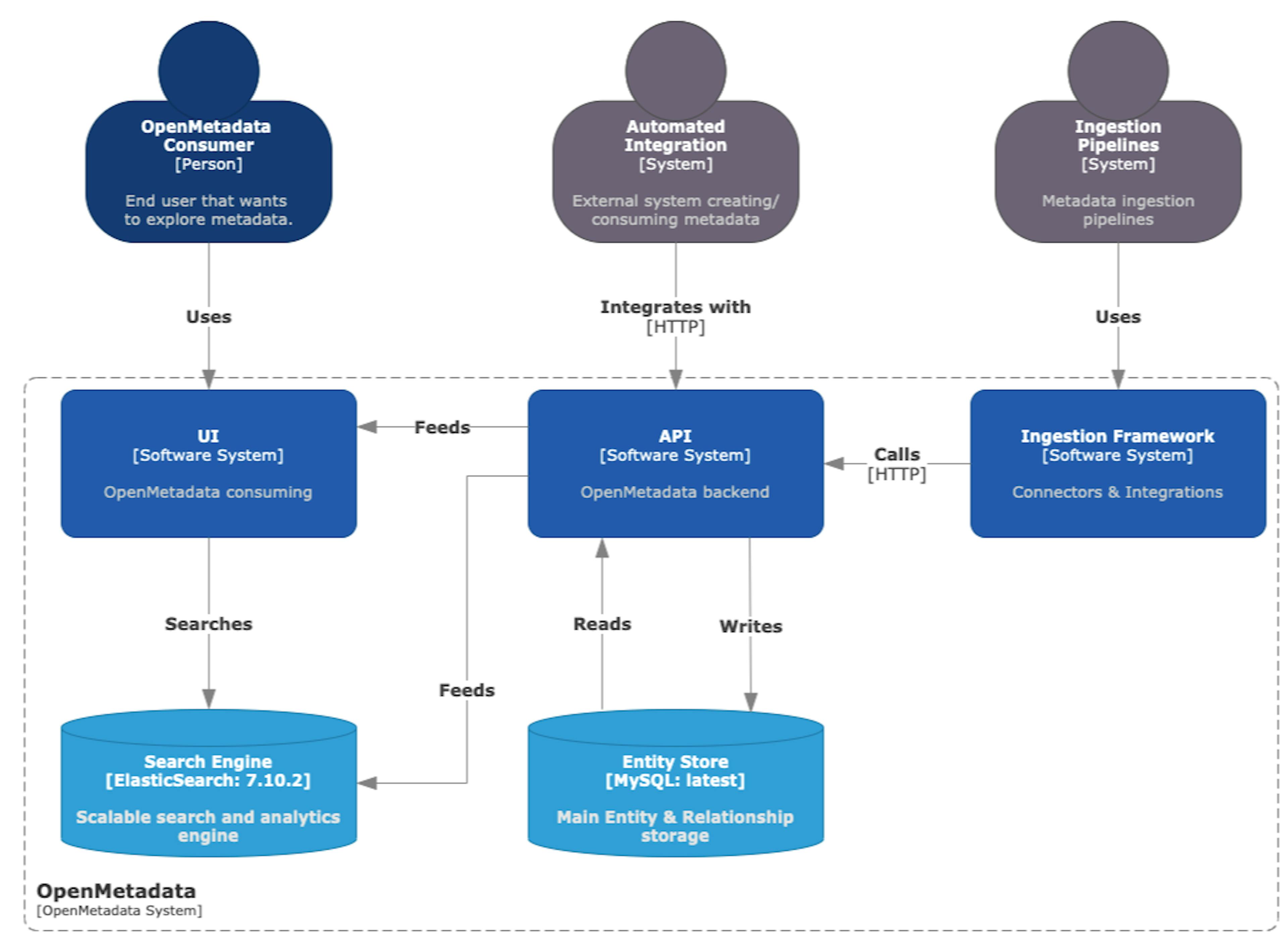 Introduction Introduction In my most recent installments, I’ve been looking at Apache Iceberg, Apache Kafka, and Apache Flink. This led me to think about what might be a helpful extension in that space to look at, which led me to think about navigating the complexities of modern data ecosystems. Managing metadata effectively ensures data discoverability, governance, and collaboration. Enter OpenMetadata, an open-source platform designed to streamline metadata management, offering a robust data discovery, observability, and governance solution. In this blog post, we’ll dive into the technical underpinnings of OpenMetadata, explore its architecture, key features, and use cases, and provide visual aids to help you understand why it’s gaining traction in the data engineering community. With that preamble, let’s dive in! Apache Iceberg Apache Iceberg Apache Kafka Apache Kafka Apache Flink Apache Flink OpenMetadata OpenMetadata What is OpenMetadata? What is OpenMetadata? OpenMetadata is a unified, open-source metadata platform that empowers organizations to manage their data assets efficiently. Launched in 2021 and inspired by lessons from Uber’s metadata infrastructure, it provides a centralized repository for metadata, enabling data discovery, lineage tracking, quality monitoring, and team collaboration. With over 300 contributors and adoption across diverse industries, OpenMetadata stands out for its simplicity, extensibility, and vibrant community. It’s built to address the challenges of fragmented data ecosystems, where metadata often becomes a bottleneck for scalability and governance. Unlike traditional metadata tools that rely on complex graph databases or proprietary systems, OpenMetadata adopts a streamlined architecture with a schema-first approach. It supports over 90 connectors for ingesting metadata from databases, data warehouses, pipelines, and dashboards, making it a versatile choice for modern data stacks. Its user-friendly interface caters to technical and non-technical users, fostering a data-driven culture. Why OpenMetadata Matters Why OpenMetadata Matters Reading a database and producing a report was pretty straightforward in the olden days. You did some joins, some filtering, some formatting, and bang, you were done. Now you have complex pipelines that grab data from various sources and types. When, not if, something goes south with the results, it’s not easy to trace where it went wrong, and this is where OpenMetadata comes in. It’s a critical asset for understanding data lineage, ensuring quality, and enabling collaboration, addressing several pain points: Fragmented Data Sources: Organizations often use multiple tools (e.g., Snowflake, dbt, Metabase), leading to siloed metadata. OpenMetadata centralizes this metadata into a unified graph. Data Discoverability: Finding relevant data assets can be time-consuming. OpenMetadata’s search capabilities and metadata enrichment make discovery intuitive. Governance and Compliance: OpenMetadata supports robust governance without excessive manual effort through features like metadata versioning and automated workflows. Scalability: Its lightweight architecture and extensive connector support suit enterprises of all sizes. Fragmented Data Sources: Organizations often use multiple tools (e.g., Snowflake, dbt, Metabase), leading to siloed metadata. OpenMetadata centralizes this metadata into a unified graph. Fragmented Data Sources Data Discoverability: Finding relevant data assets can be time-consuming. OpenMetadata’s search capabilities and metadata enrichment make discovery intuitive. Data Discoverability Governance and Compliance: OpenMetadata supports robust governance without excessive manual effort through features like metadata versioning and automated workflows. Governance and Compliance Scalability: Its lightweight architecture and extensive connector support suit enterprises of all sizes. Scalability Architecture of OpenMetadata Architecture of OpenMetadata Based on the time I spent, it appears that OpenMetadata is comprised of four core components: Metadata Store: A central repository that stores the metadata graph, connecting data assets, users, and tool-generated metadata. It uses a relational database (e.g., MySQL, Postgres) for storage, avoiding the complexity of graph databases like Neo4j. Ingestion Framework: A pluggable framework that ingests metadata from over 90 sources, including databases (e.g., BigQuery, Snowflake), data lakes (e.g., S3, Iceberg), and BI tools (e.g., Power BI). Connectors are written in Python and support custom extensions. Metadata Schemas: JSON-based schemas define metadata entities (e.g., tables, dashboards) and relationships. These schemas are extensible, allowing organizations to tailor metadata to their needs. User Interface: A web-based UI built with React, offering search, lineage visualization, and collaboration tools. It integrates with Elasticsearch for full-text search and supports CMD + K shortcuts for quick navigation. Metadata Store: A central repository that stores the metadata graph, connecting data assets, users, and tool-generated metadata. It uses a relational database (e.g., MySQL, Postgres) for storage, avoiding the complexity of graph databases like Neo4j. Metadata Store Ingestion Framework: A pluggable framework that ingests metadata from over 90 sources, including databases (e.g., BigQuery, Snowflake), data lakes (e.g., S3, Iceberg), and BI tools (e.g., Power BI). Connectors are written in Python and support custom extensions. Ingestion Framework Metadata Schemas: JSON-based schemas define metadata entities (e.g., tables, dashboards) and relationships. These schemas are extensible, allowing organizations to tailor metadata to their needs. Metadata Schemas User Interface: A web-based UI built with React, offering search, lineage visualization, and collaboration tools. It integrates with Elasticsearch for full-text search and supports CMD + K shortcu