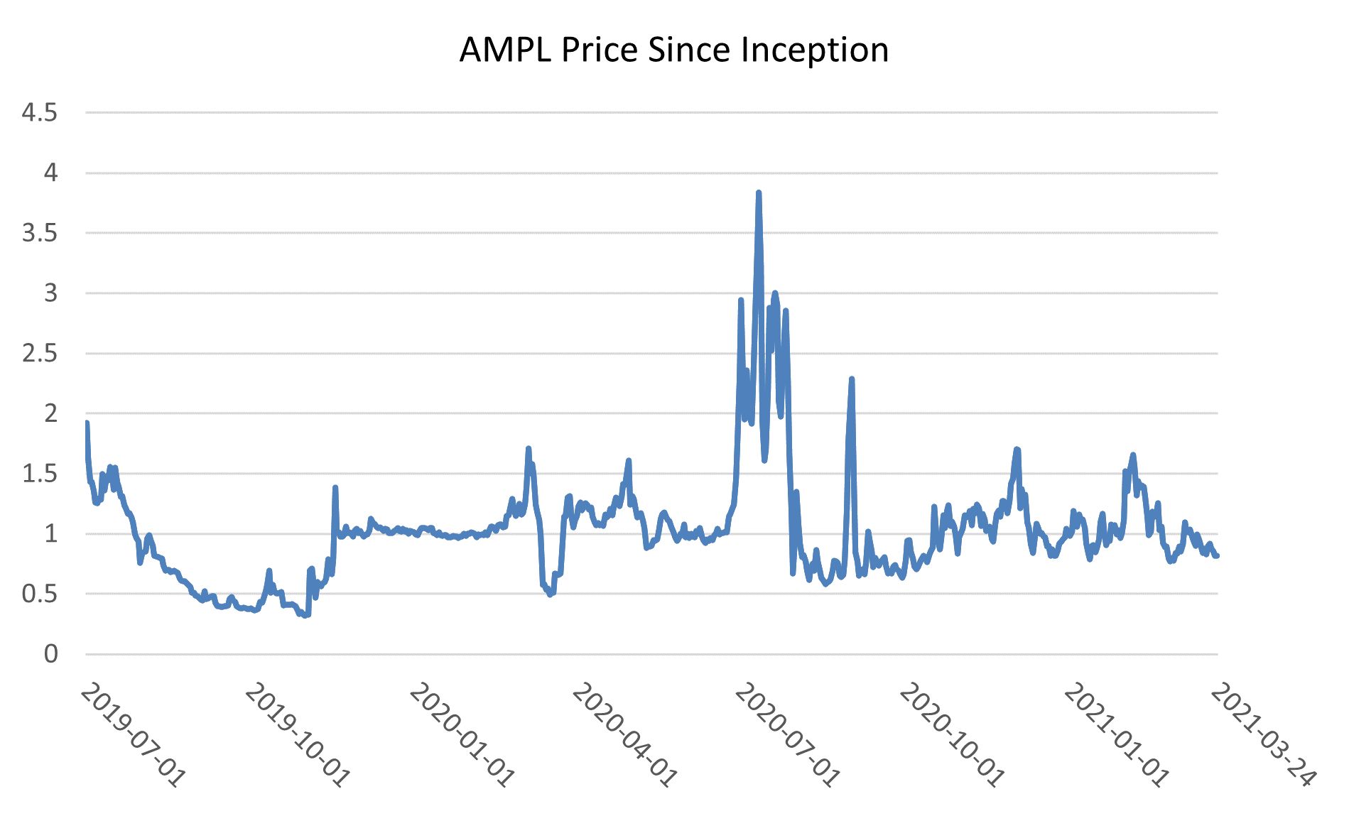 Ampleforth price gyrating around the peg. Source: CoinMarketCap